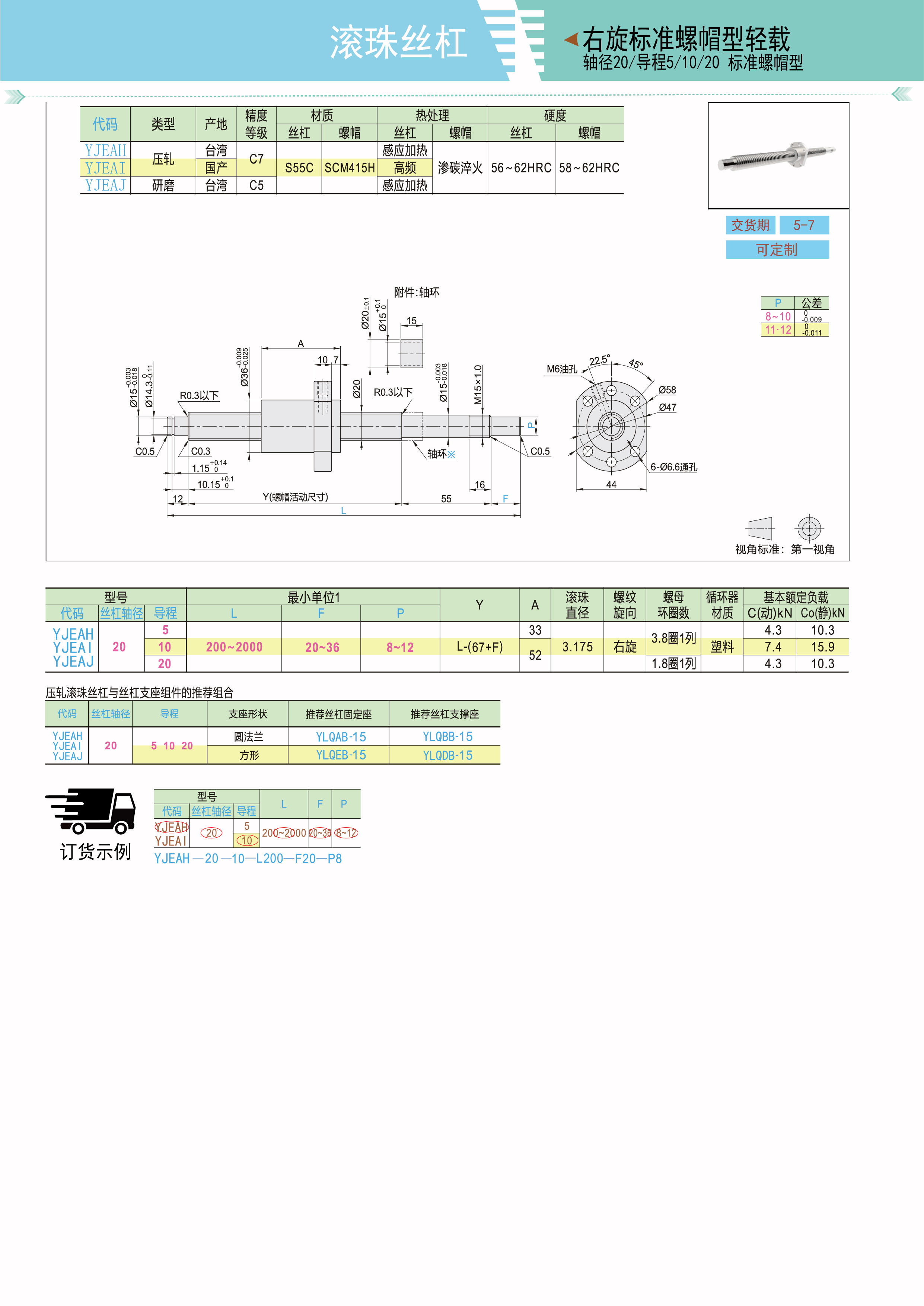 压轧滚珠丝杠 右旋标准螺帽型轻载 轴径20 精度C7