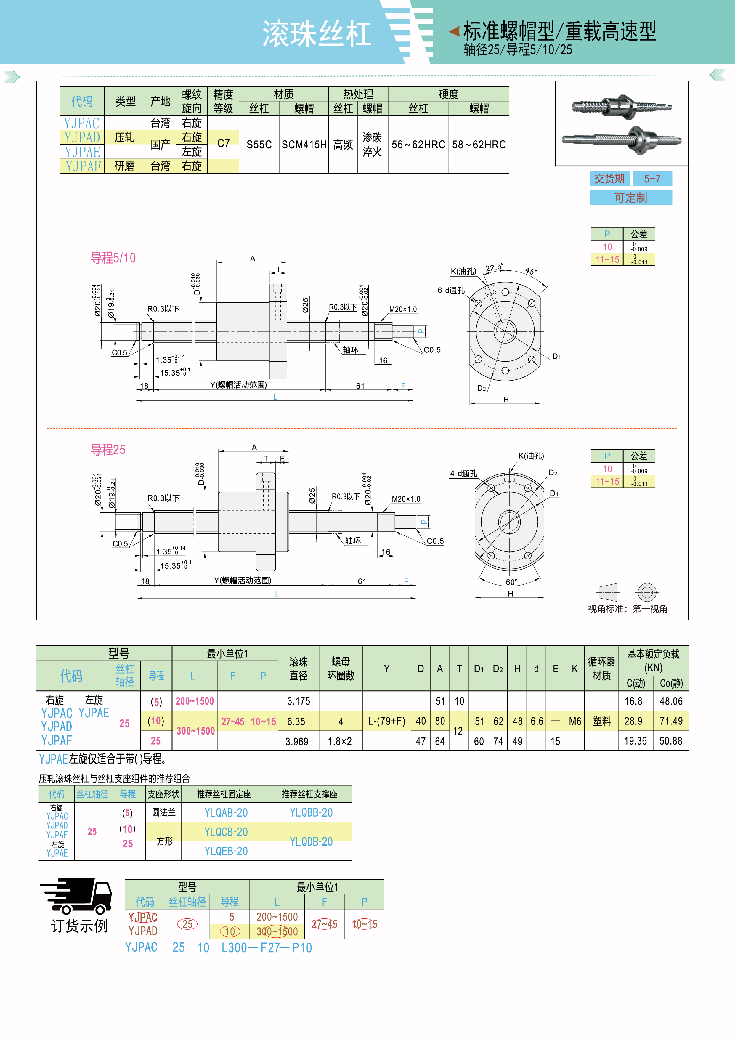 压轧滚珠丝杠 标准螺帽型 重载高速型 轴径25 精度C7