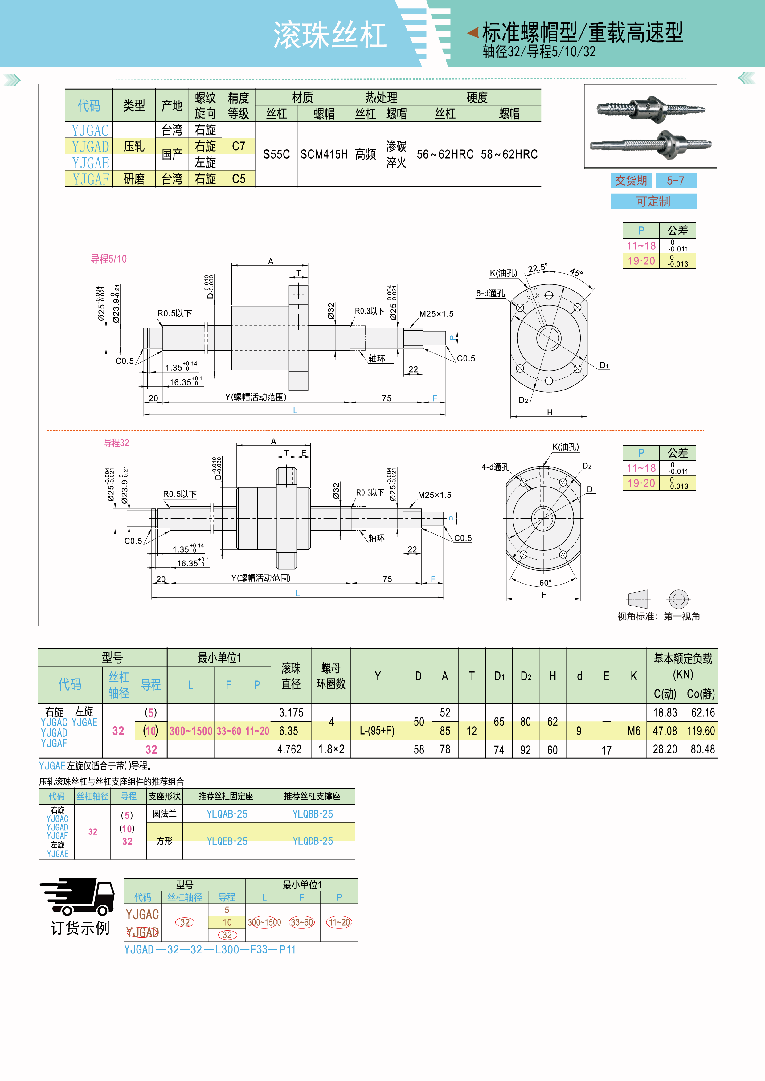 压轧滚珠丝杠 标准螺帽型 重载高速型 轴径32 精度C7