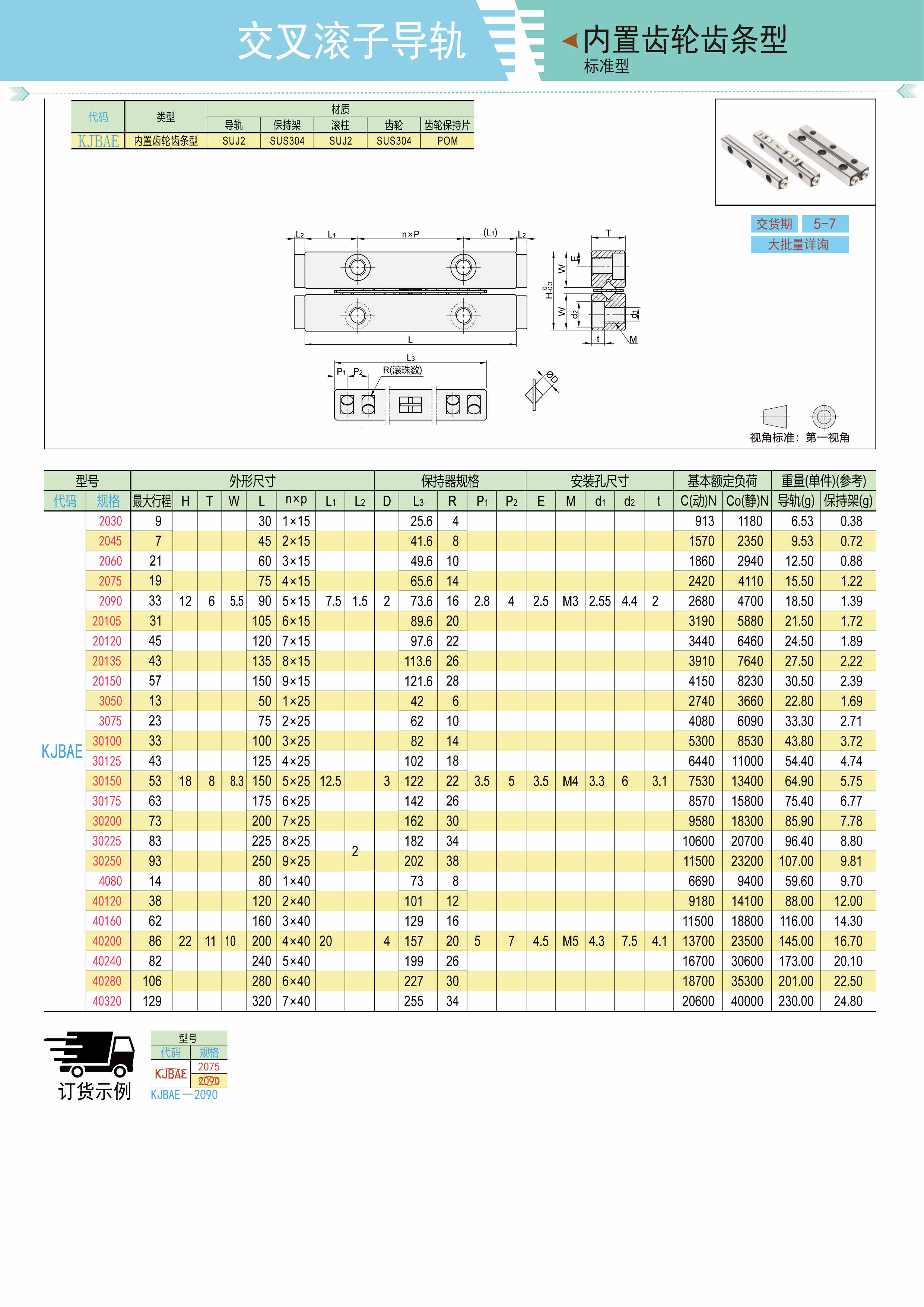 交叉滚子导轨 内置齿轮齿条型 标准型