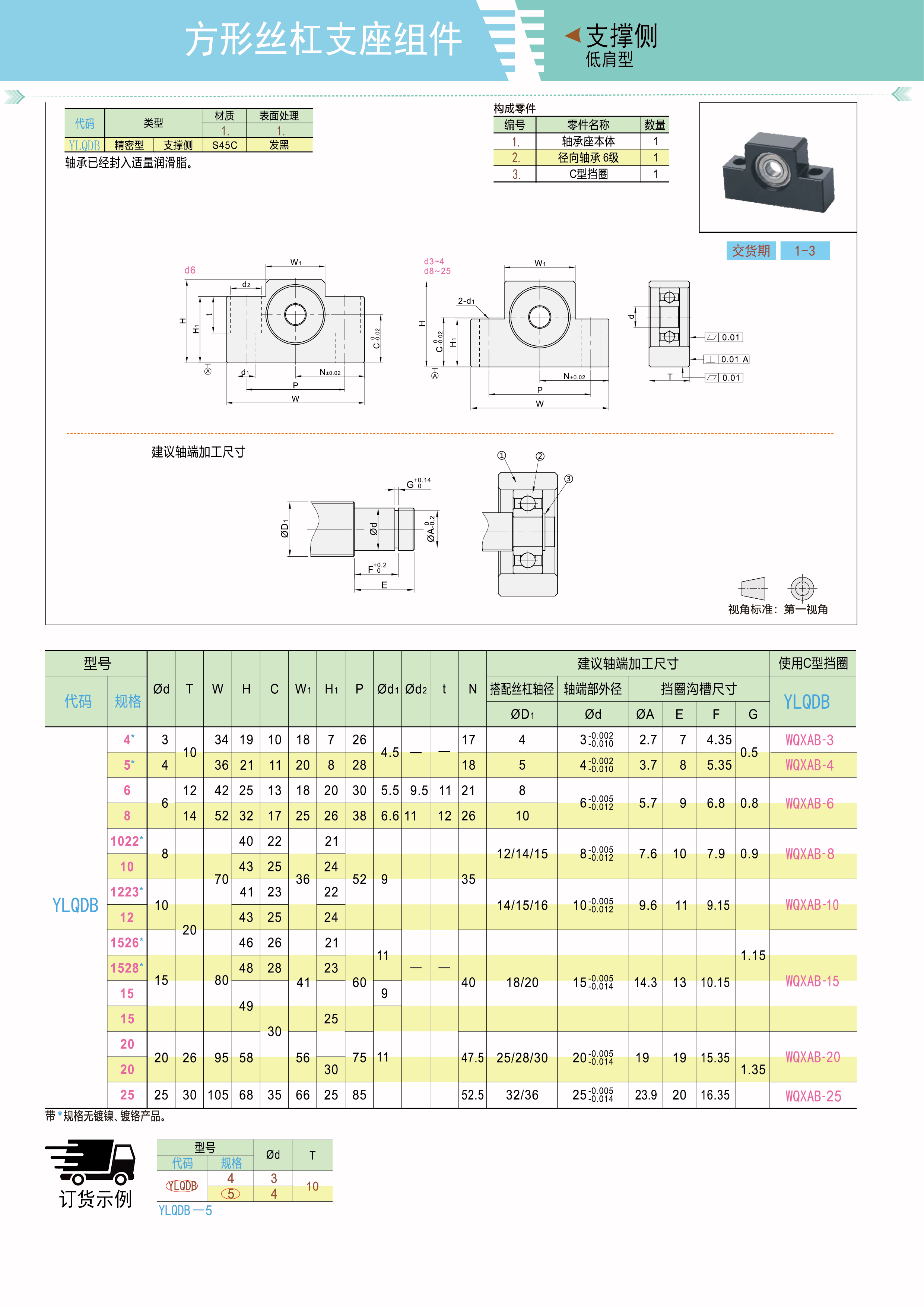 方形丝杠支座组件 支撑侧 低肩型 精密型 标准型