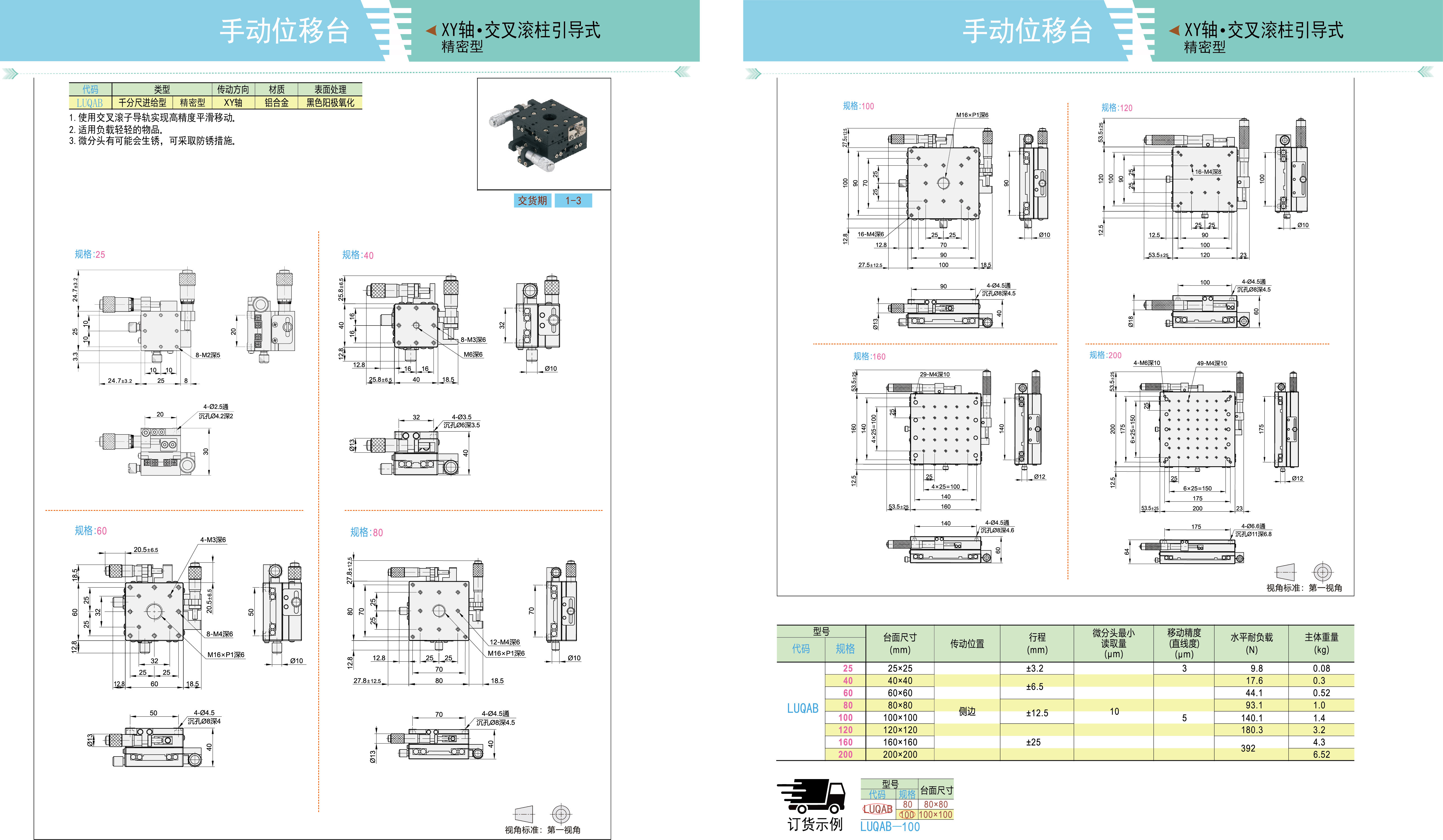 手动位移台 XY轴 交叉滚柱引导式 千分尺进给式 精密型