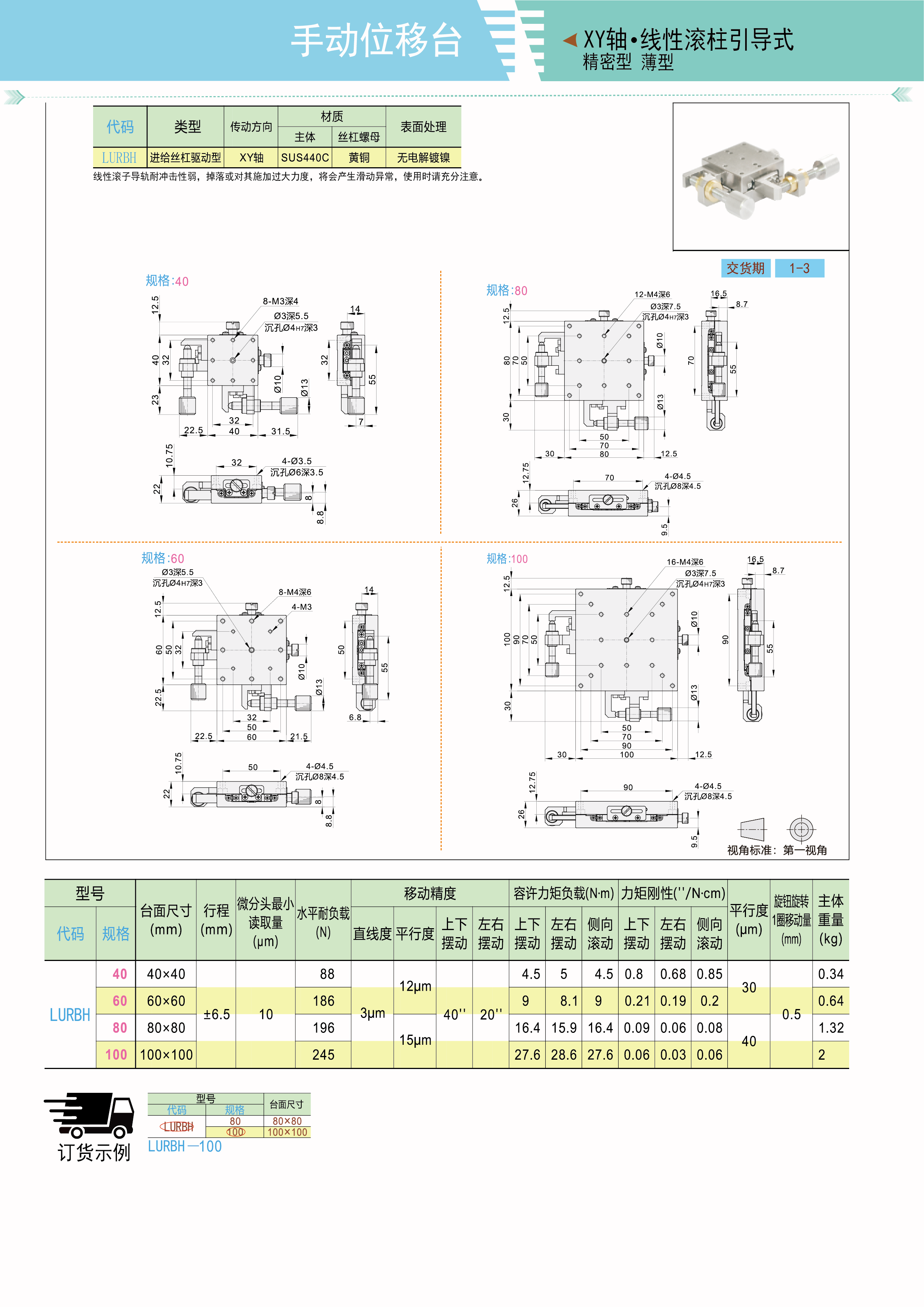 手动位移台 XY轴 线性滚珠引导式 进给丝杠驱动式 薄型 精密型