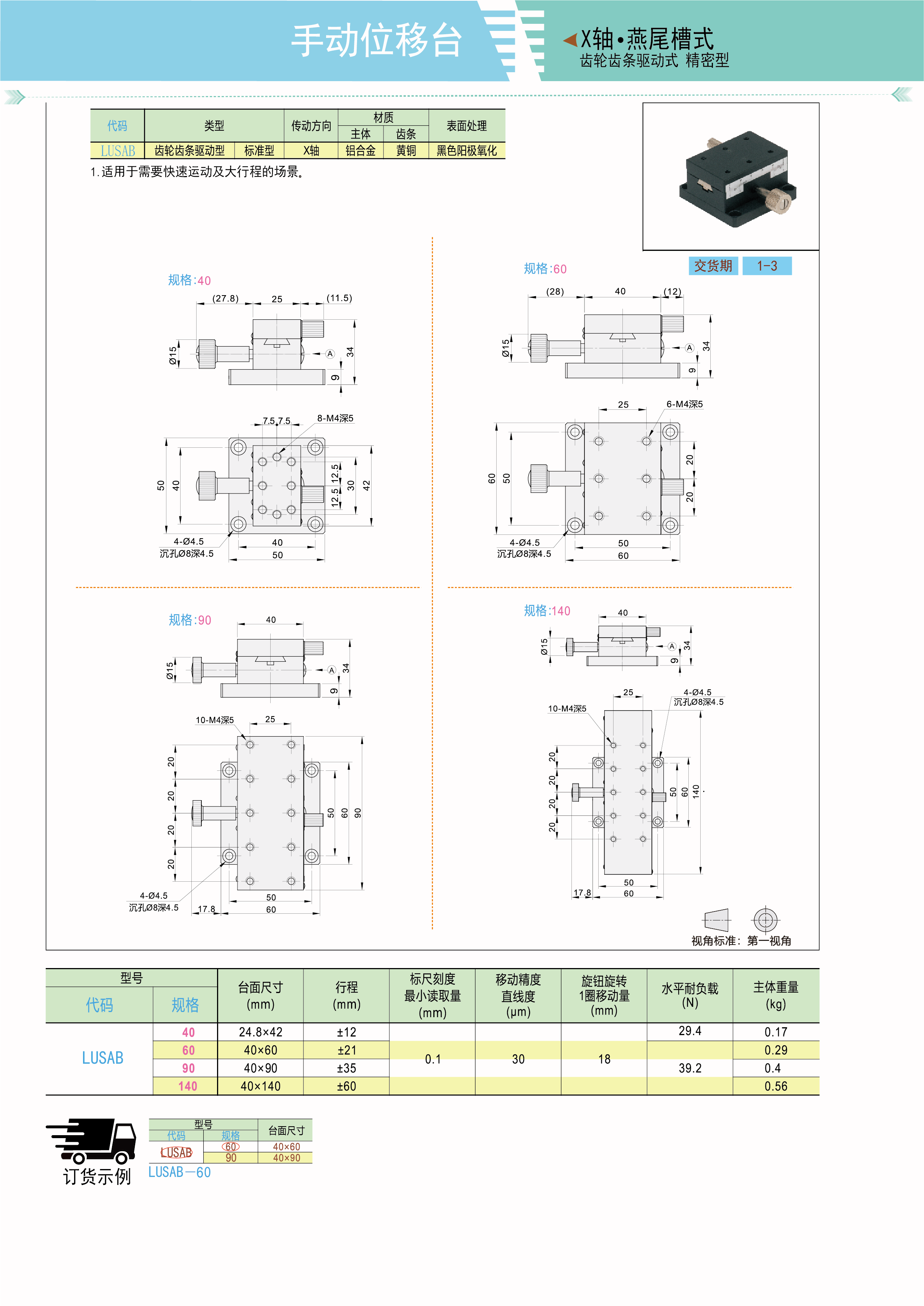 手动位移台 X轴 燕尾槽式 齿轮齿条驱动式 精密型