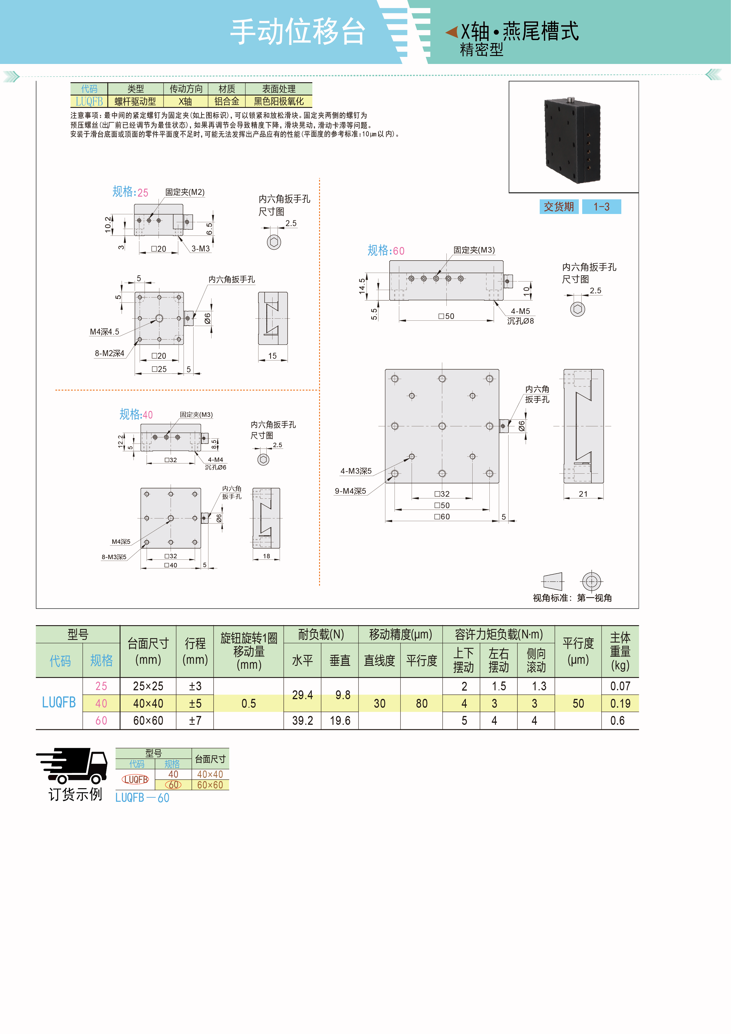 手动位移台 X轴 燕尾槽式 螺杆驱动式 精密型