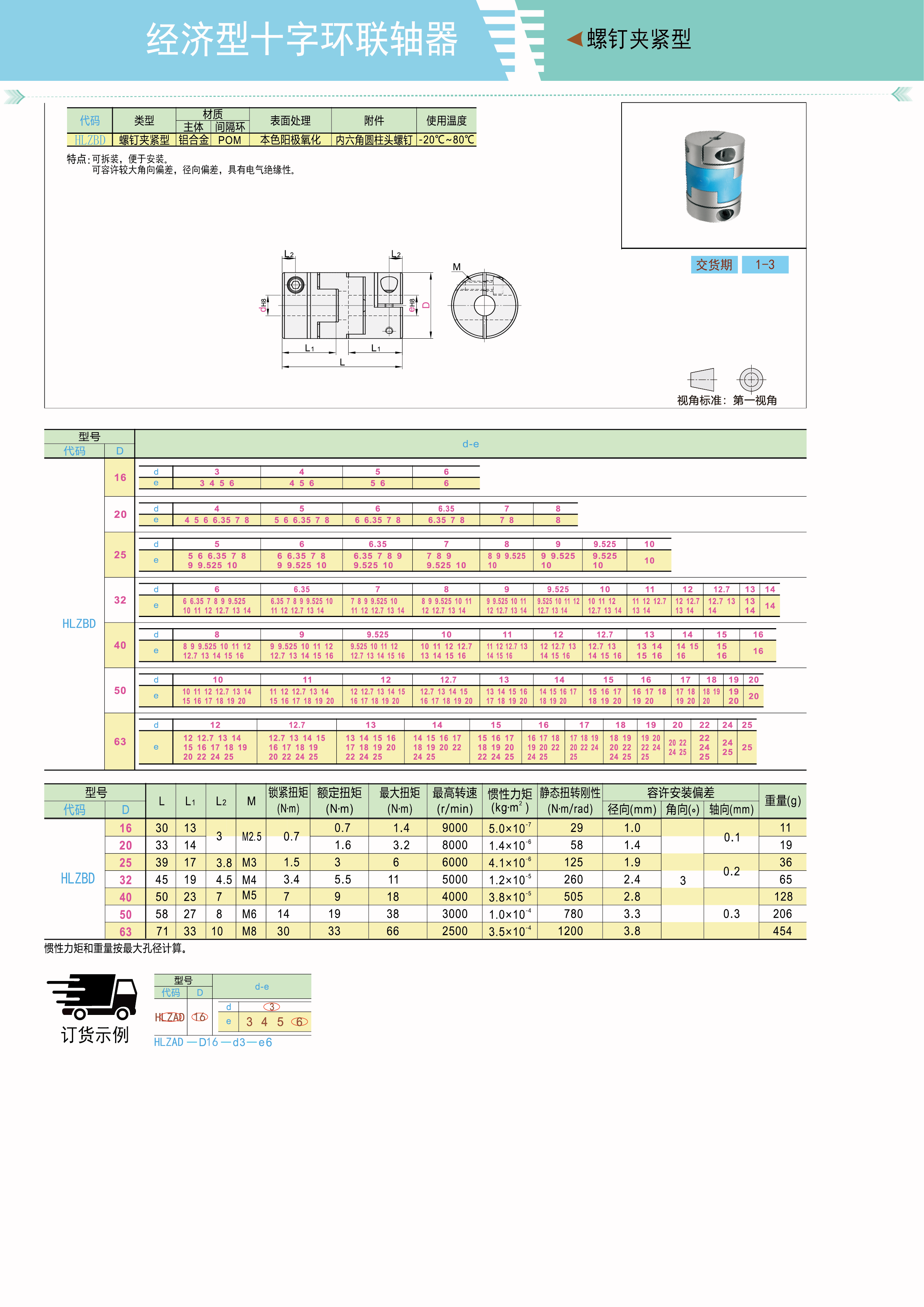 十字环联轴器 螺钉夹紧型 调整环材质POM