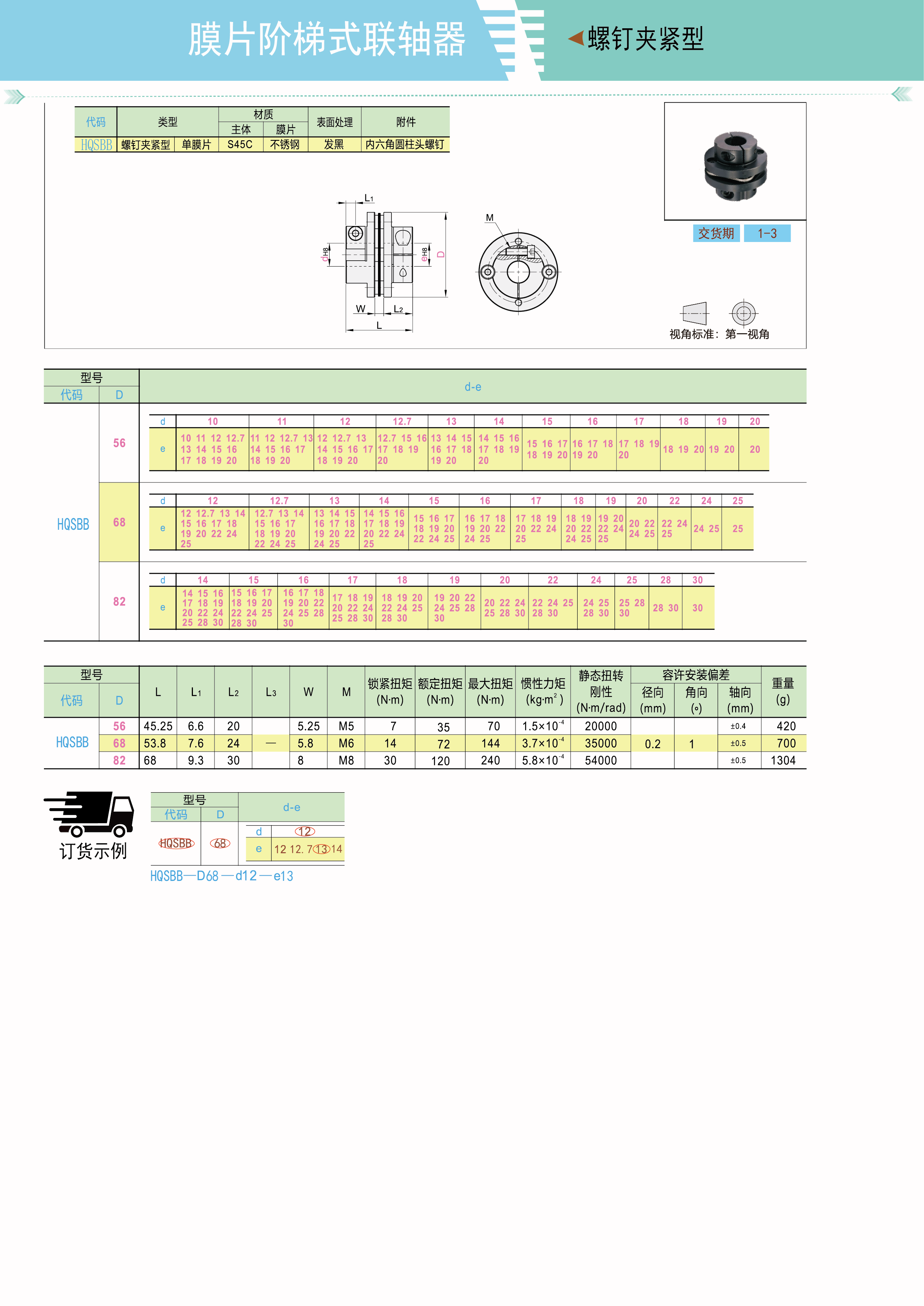 膜片阶梯式联轴器 单膜片 螺钉夹紧型 发黑