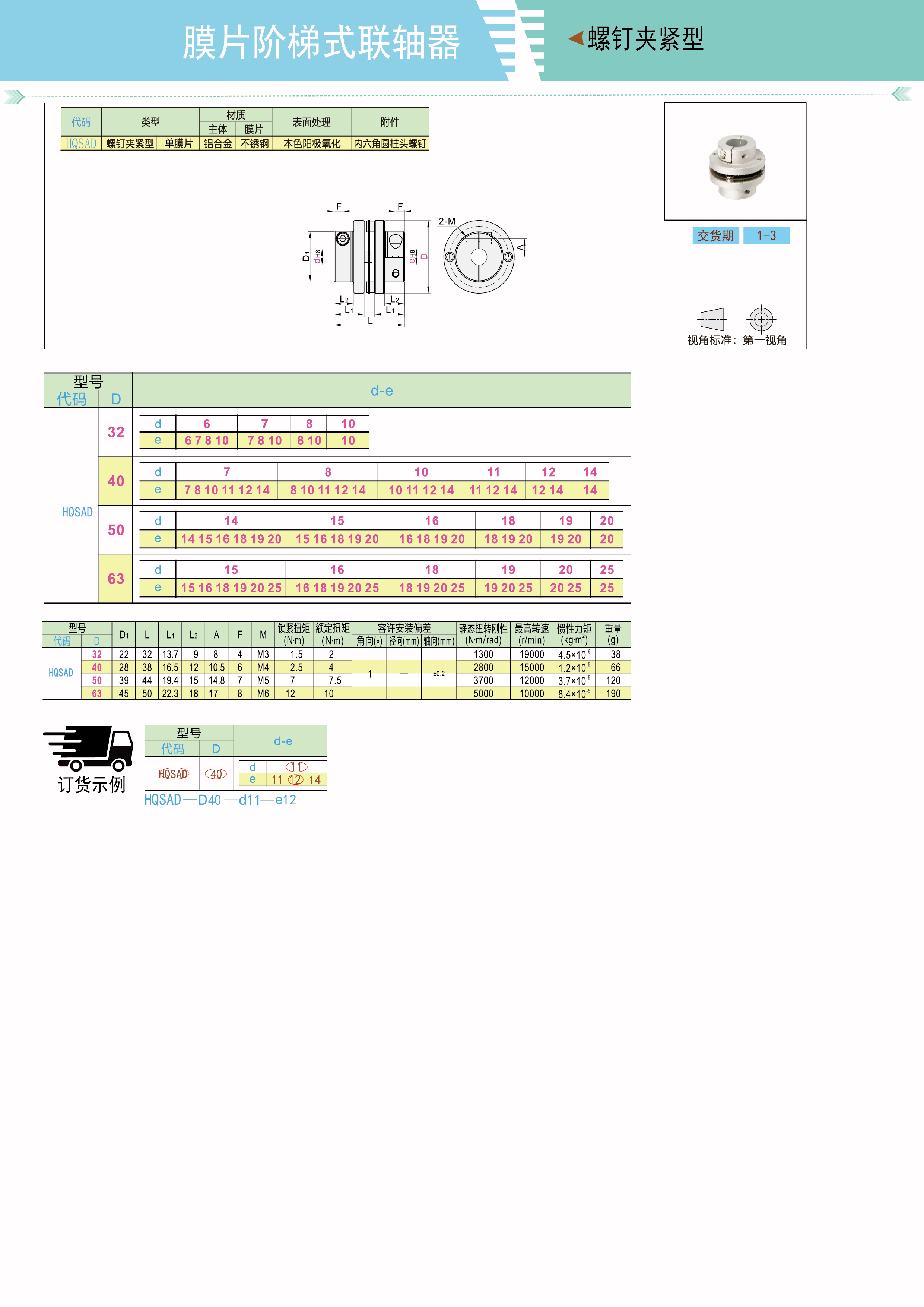 膜片阶梯式联轴器 螺钉夹紧型 单膜片