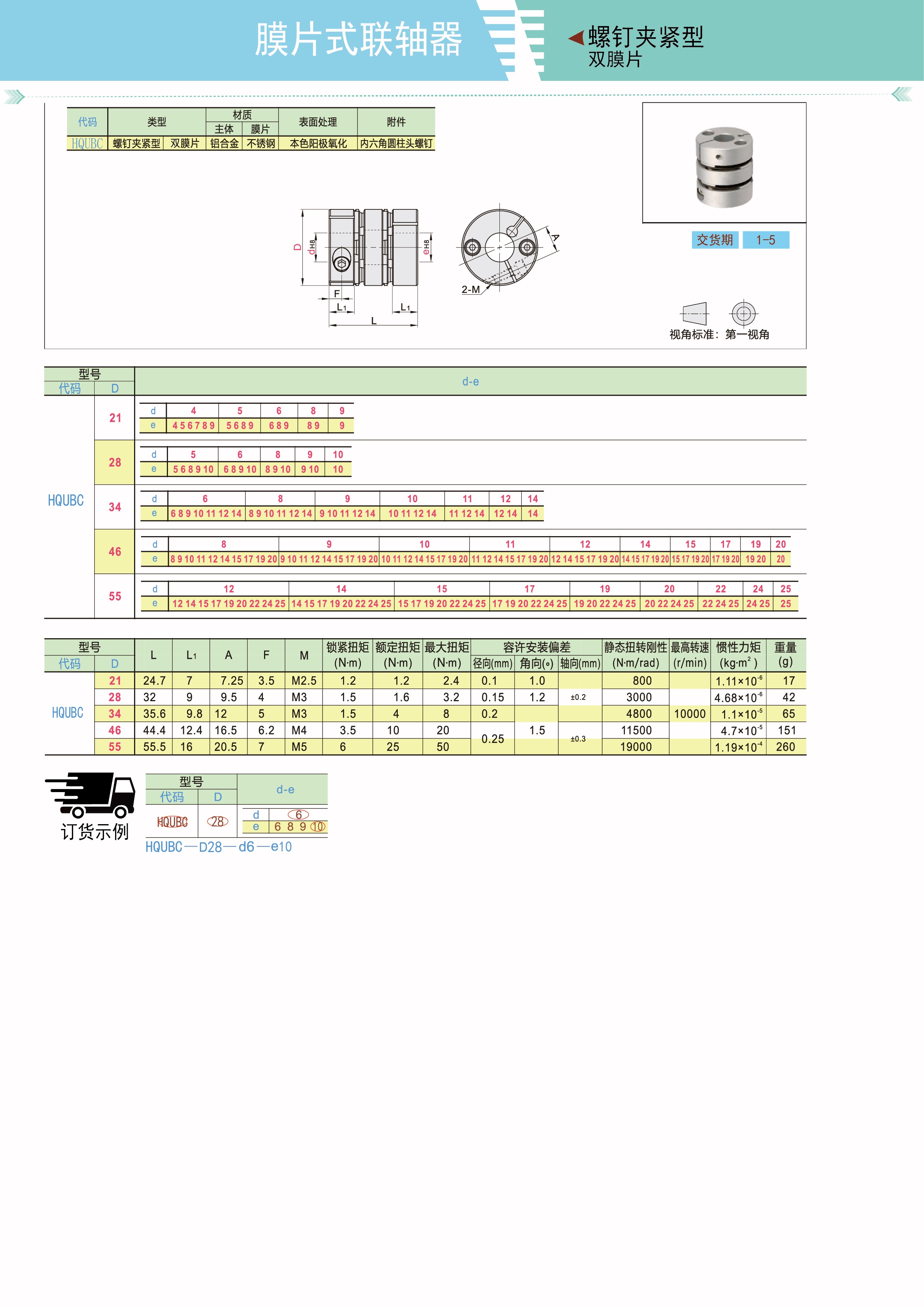 膜片式联轴器 螺钉夹紧型 双膜片