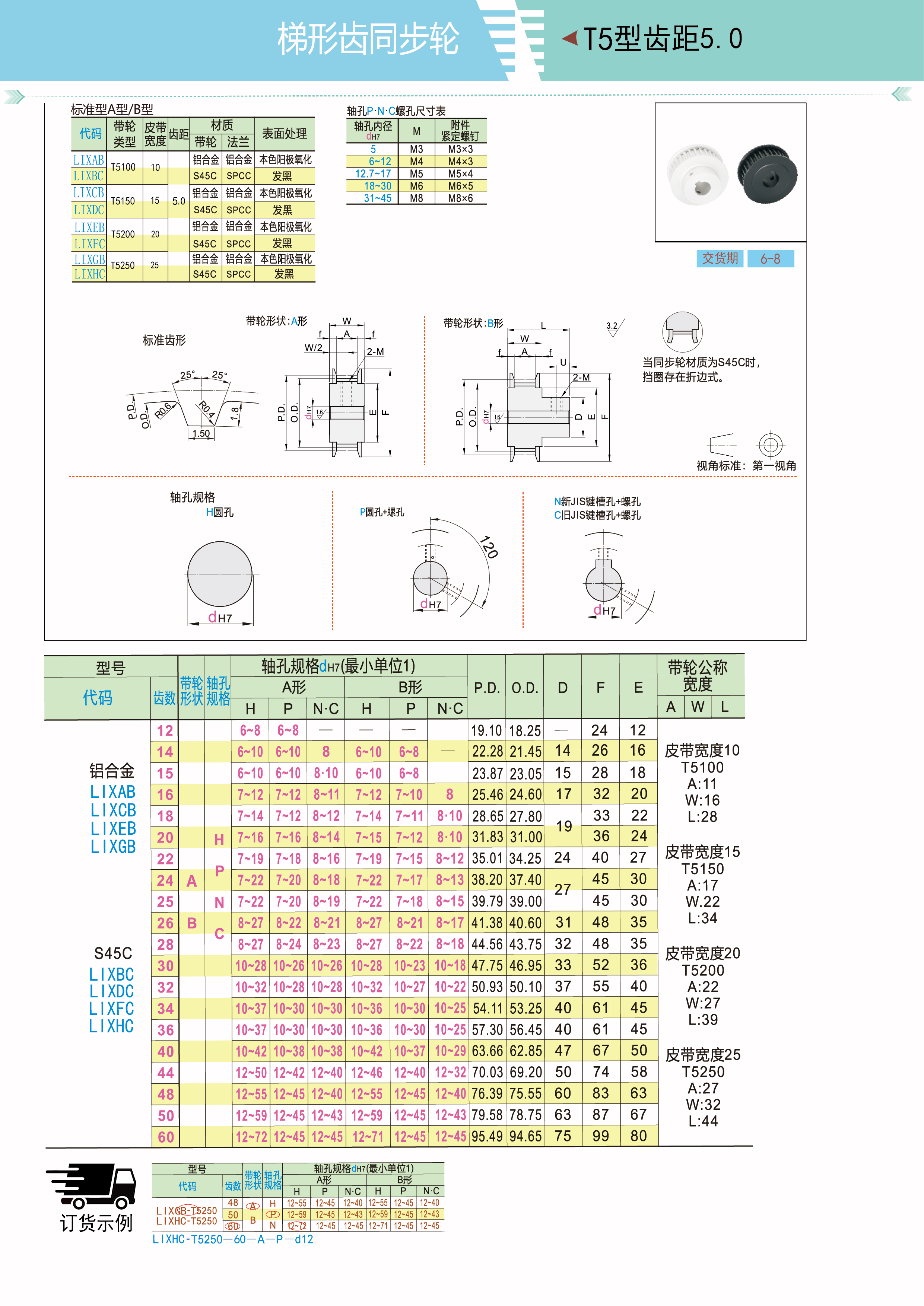 梯形齿同步轮 T5型 齿距5.0 标准型
