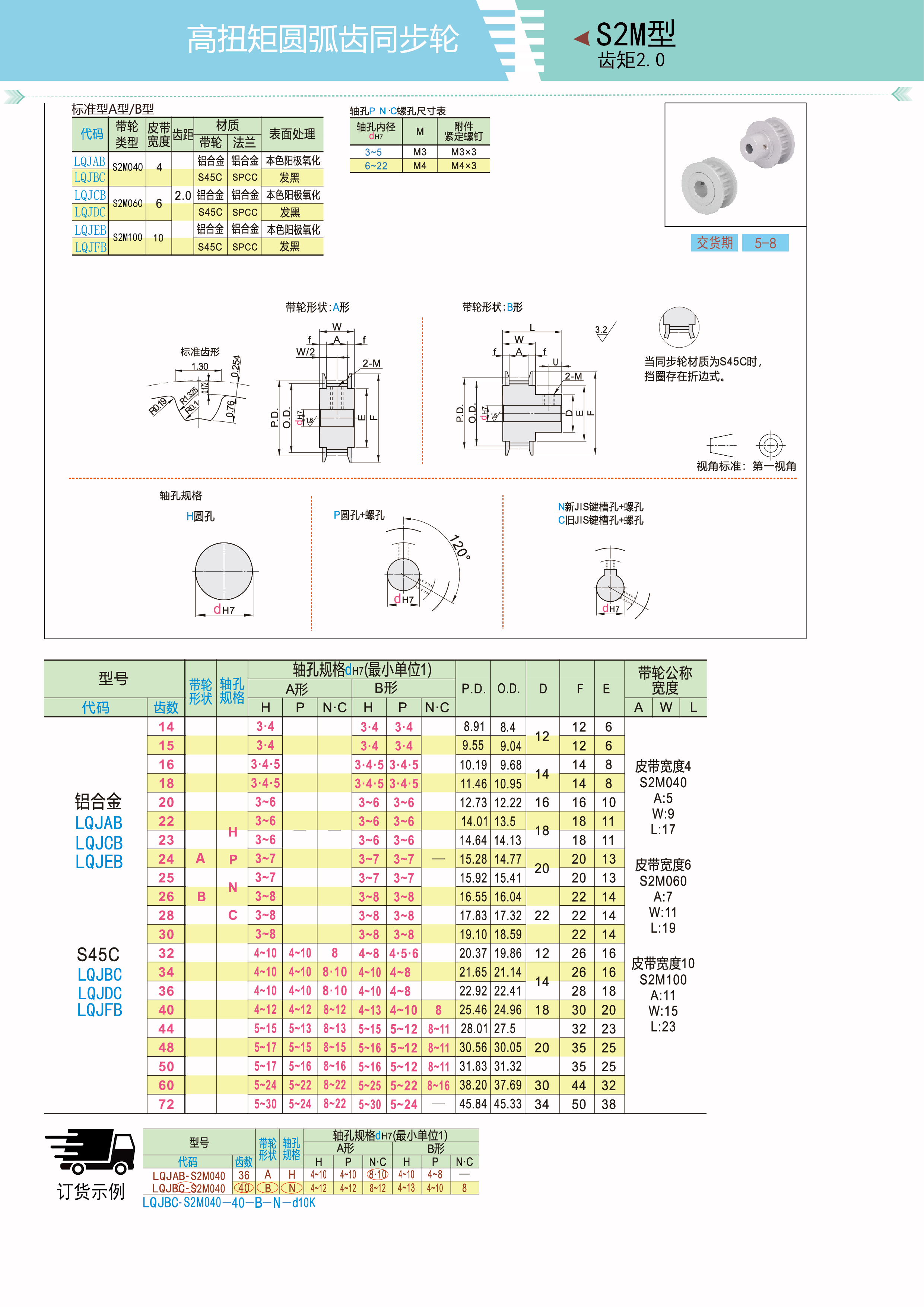 高扭矩圆弧齿同步轮 S2M型 齿距2.0 标准型