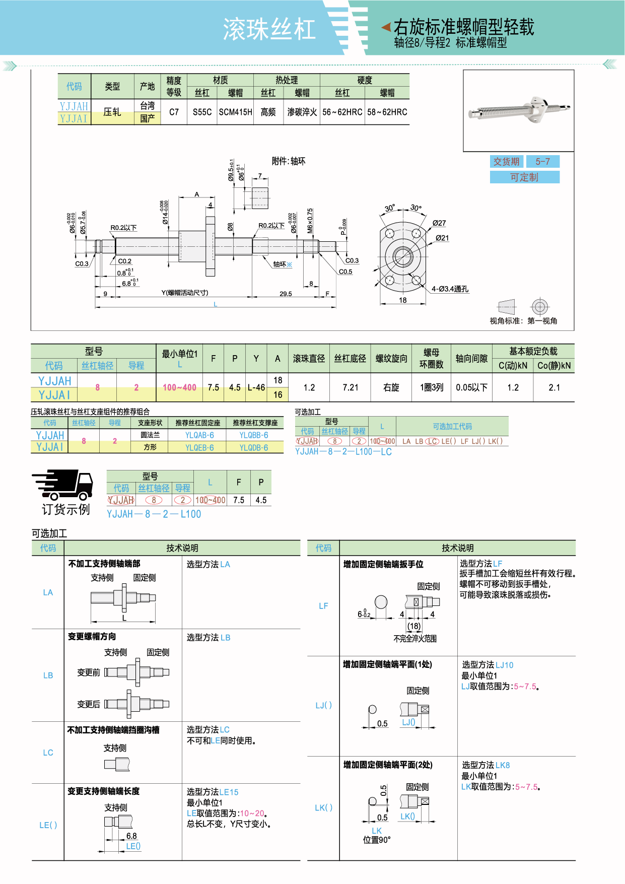 压轧滚珠丝杠 右旋标准螺帽型轻载 轴径8 精度C7
