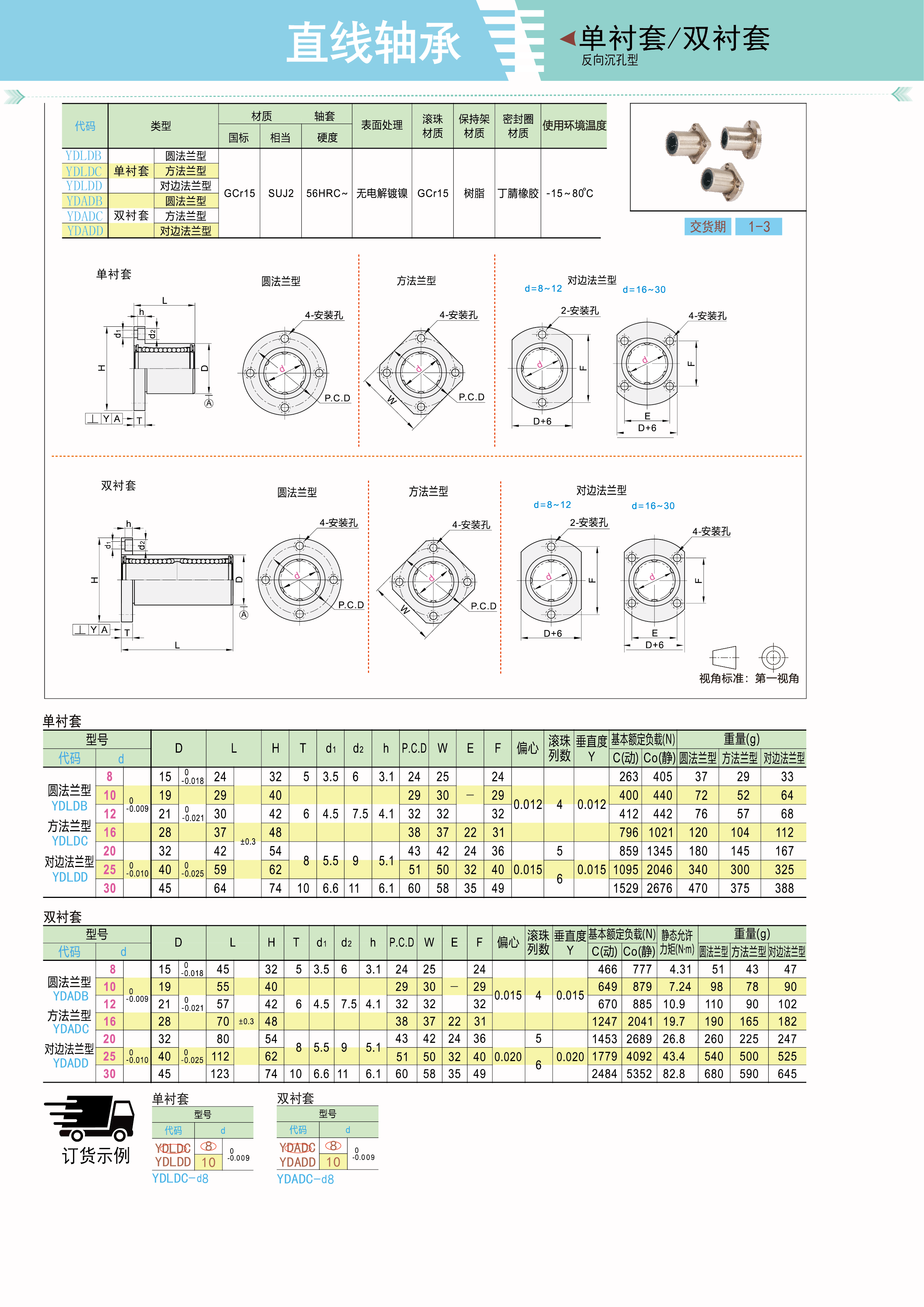 带法兰直线轴承 标准型 单衬型 双衬型 反向沉孔型