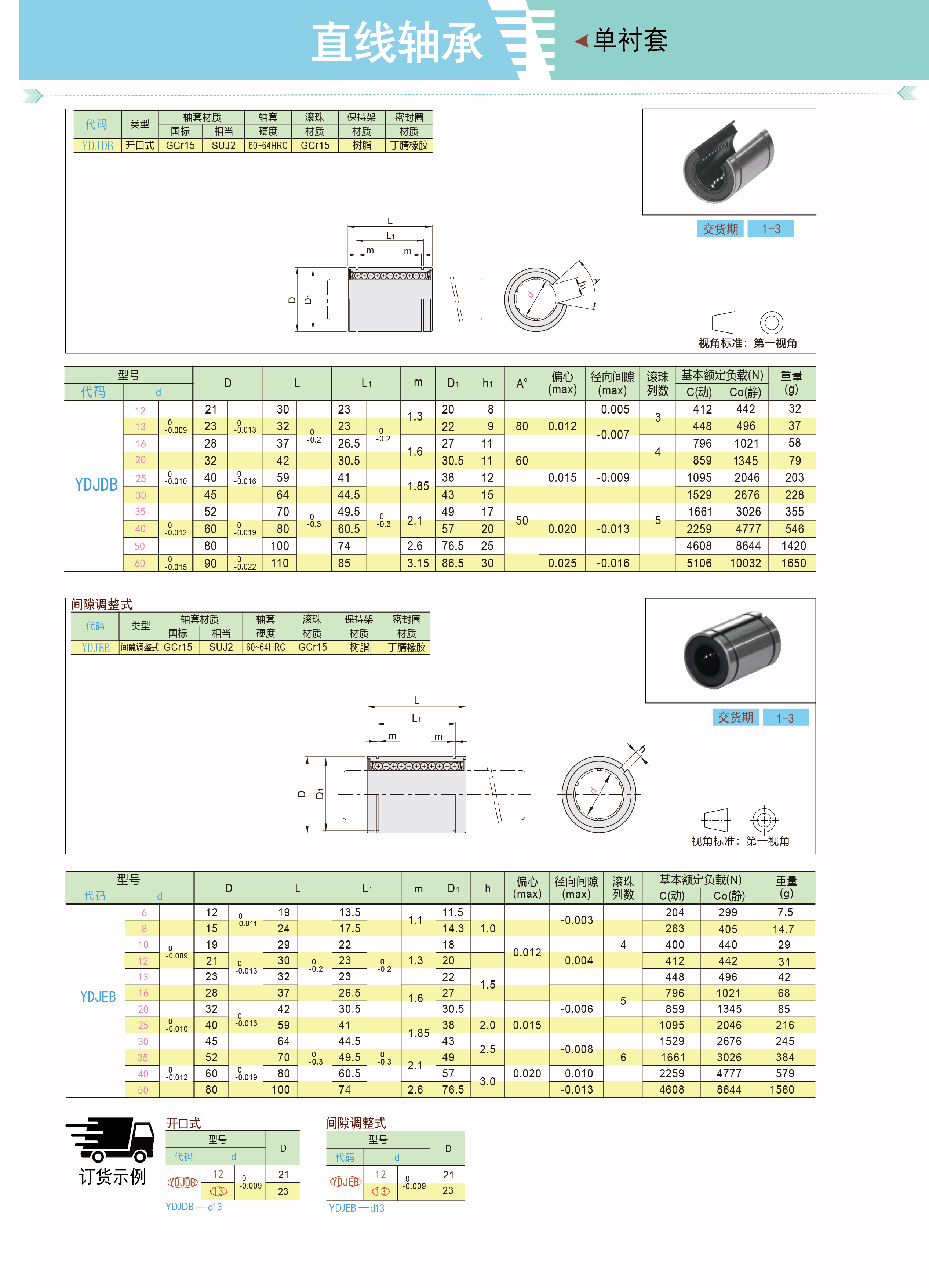 直线轴承 直柱型 开口式 间隙调整式 单衬型 标准型