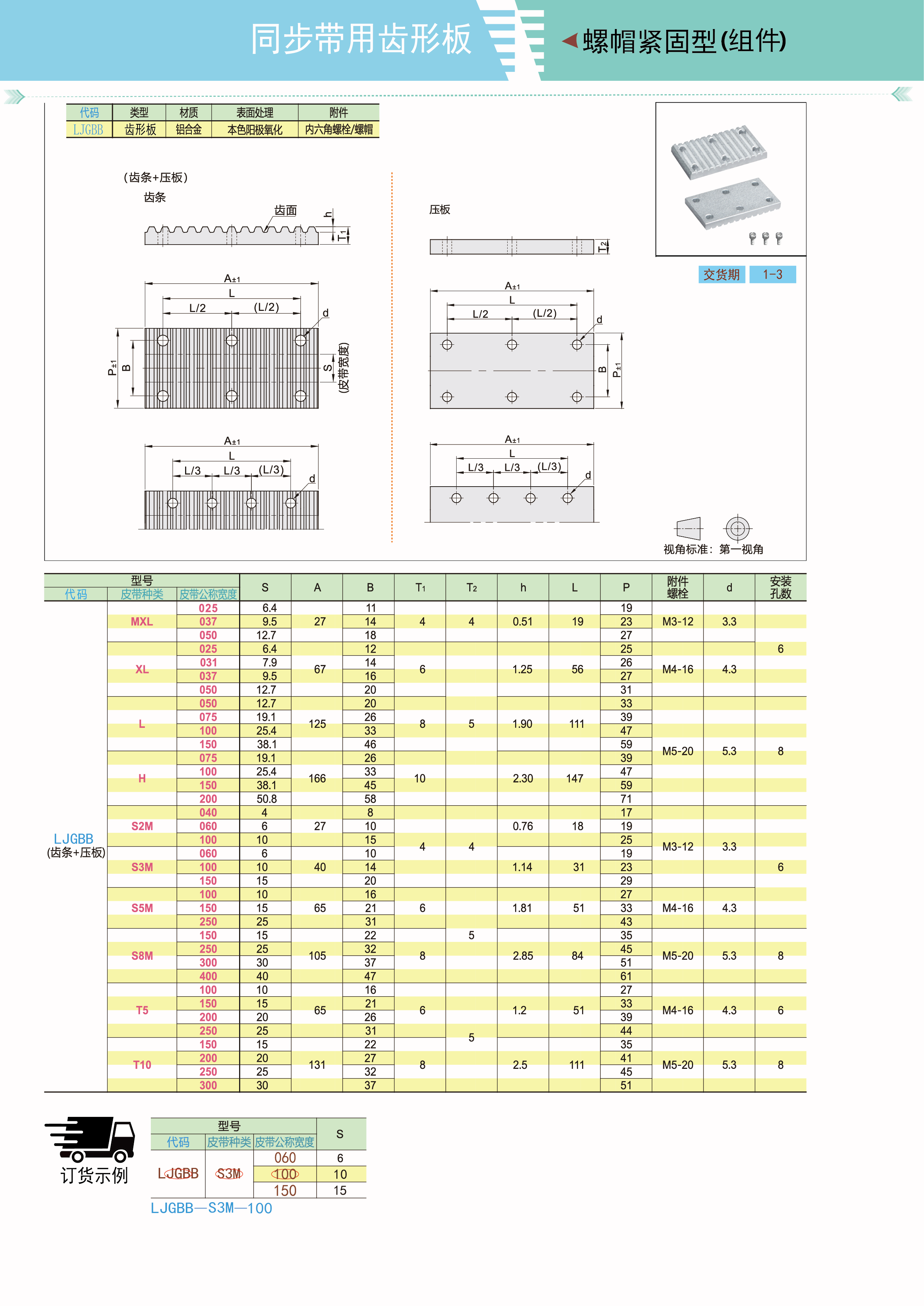 同步带用金属件 齿形板 螺帽紧固型 组件