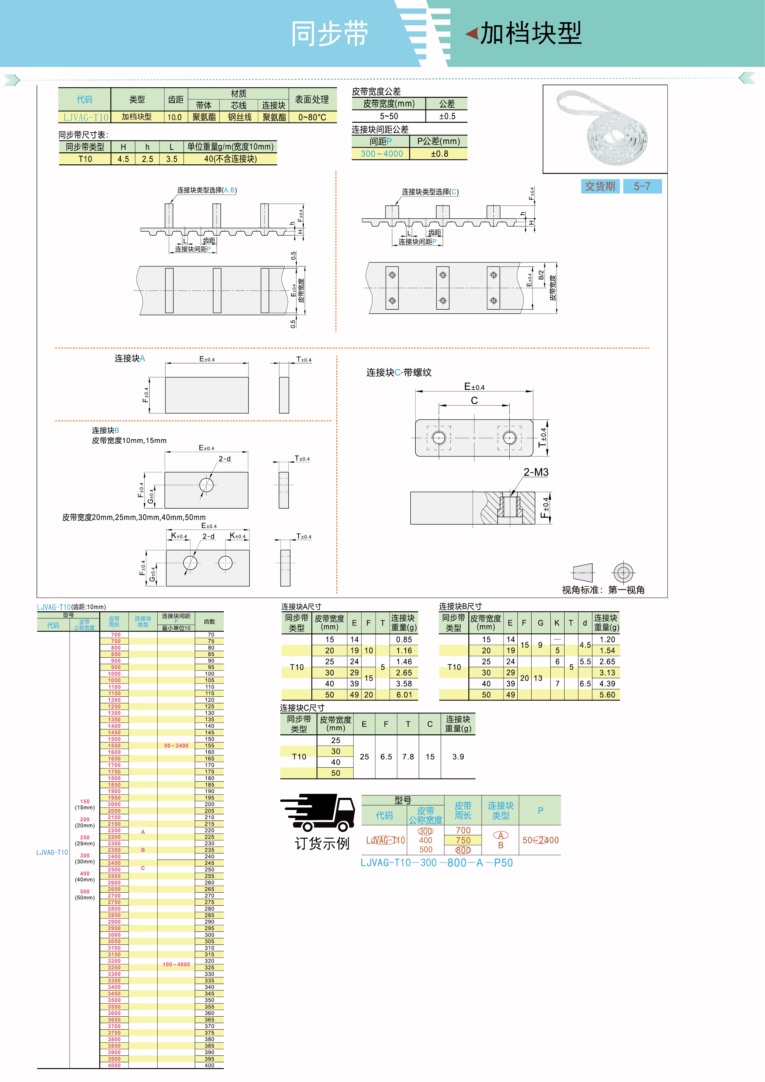 聚氨酯同步带 加挡块型 聚氨酯白色