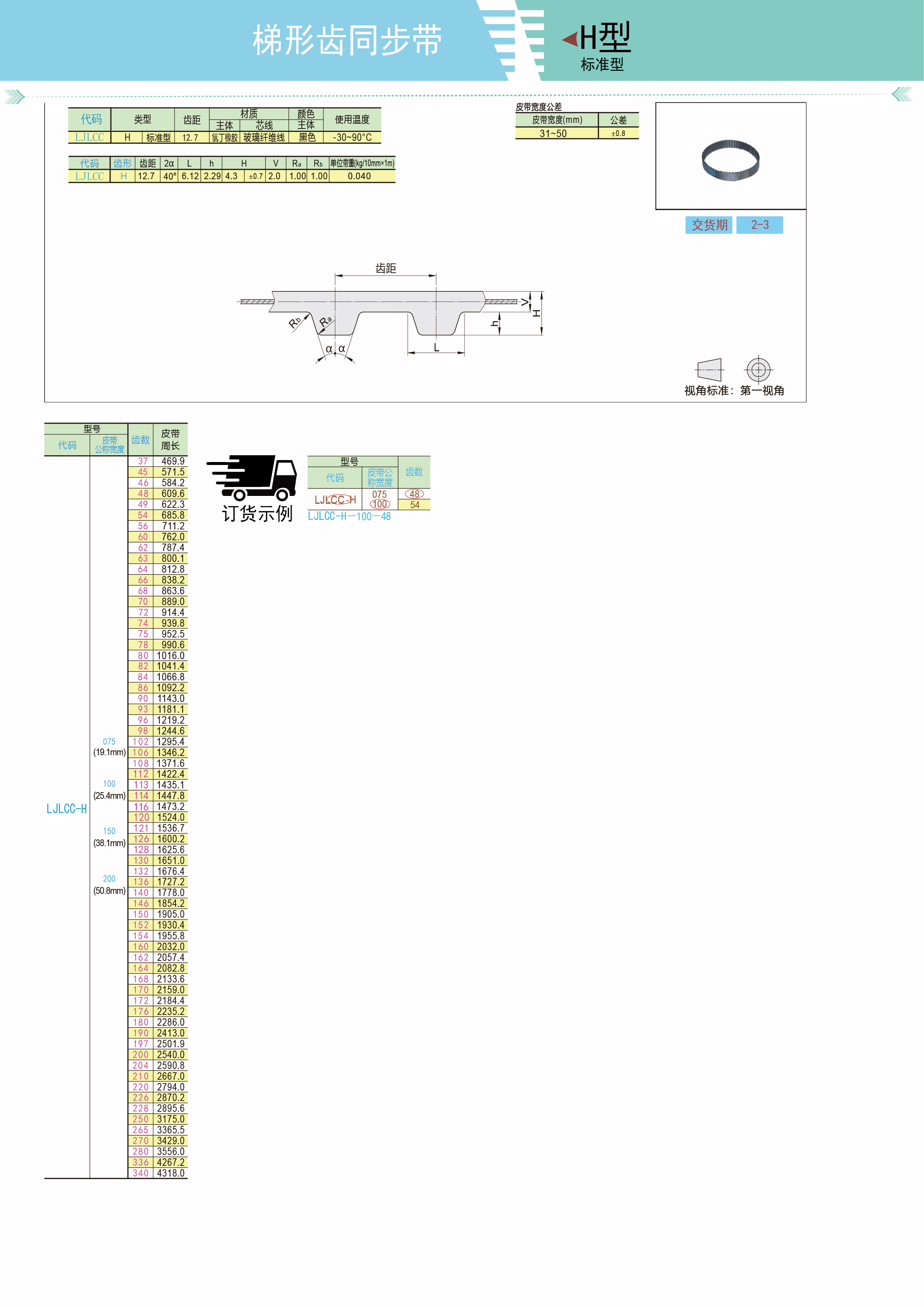 梯形齿同步带 标准型 H型 氯丁橡胶玻璃纤维线 黑色