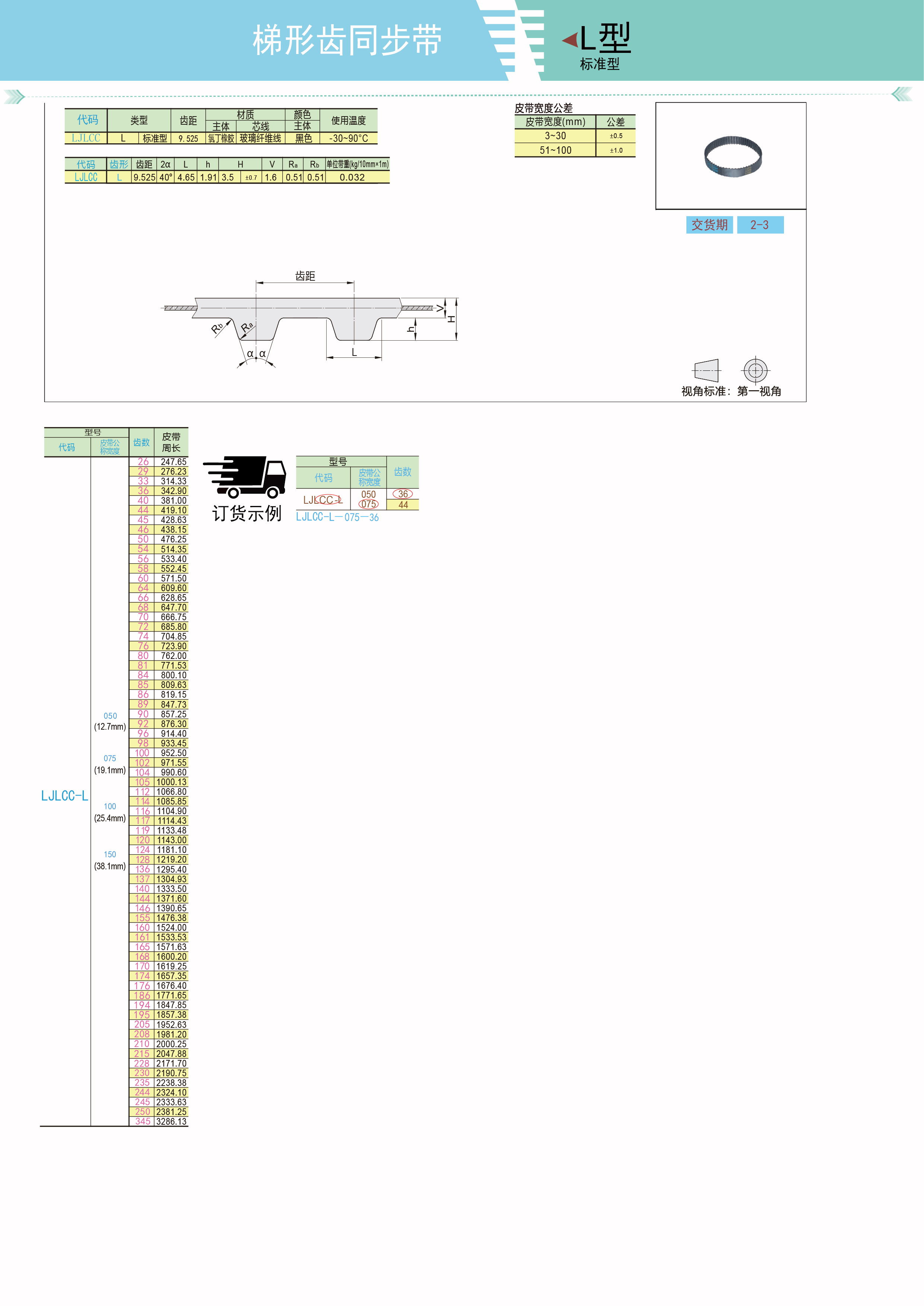 梯形齿同步带 标准型 L型 氯丁橡胶玻璃纤维线 黑色