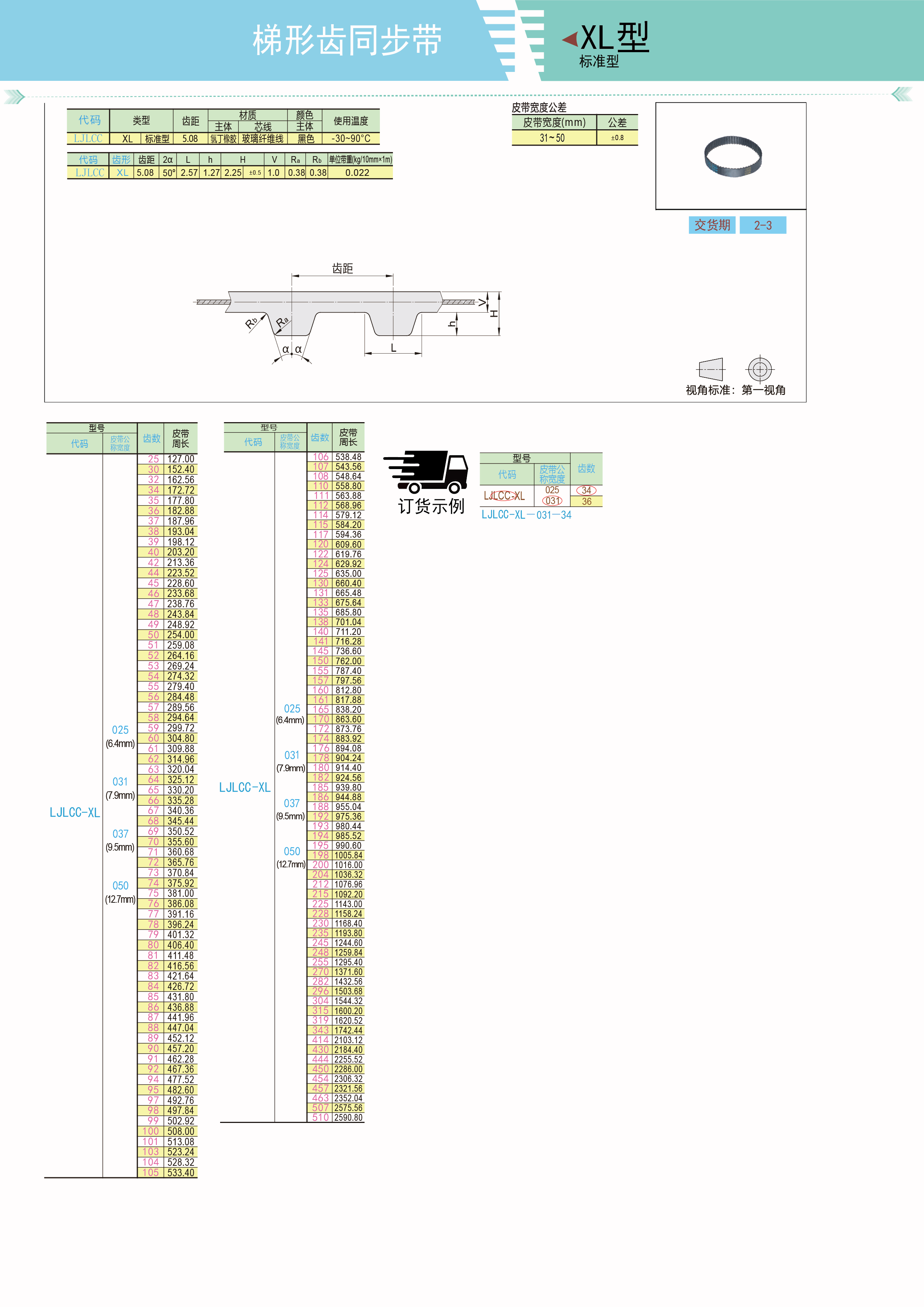 梯形齿同步带 标准型 XL型 氯丁橡胶玻璃纤维线 黑色