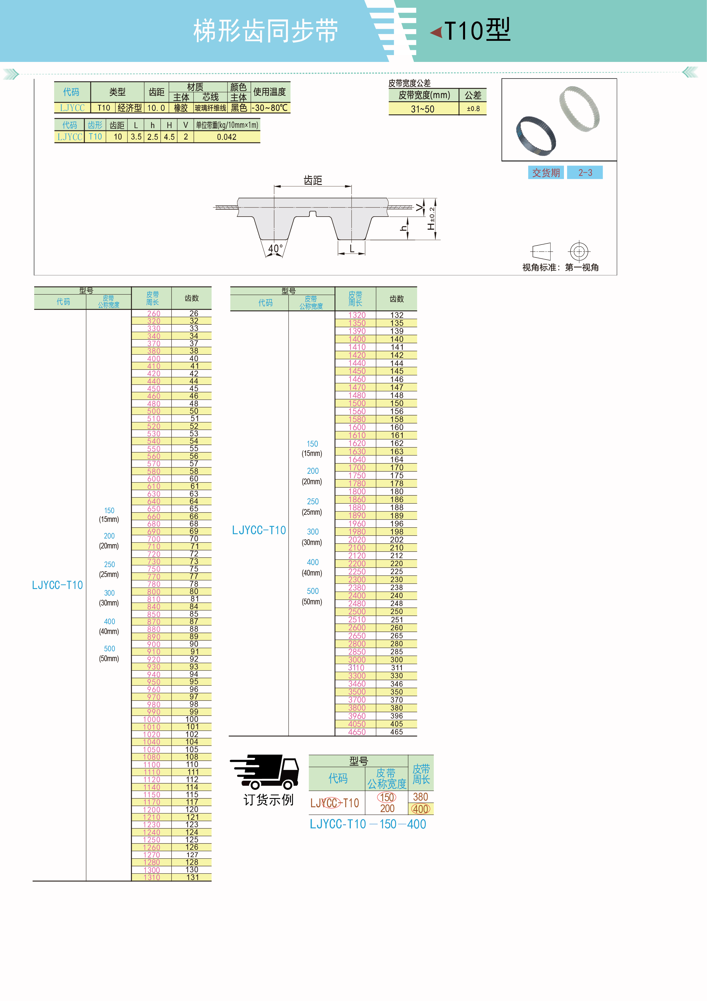 梯形齿同步带 经济型 精密型 T10型 氯丁橡胶玻璃纤维线 黑色