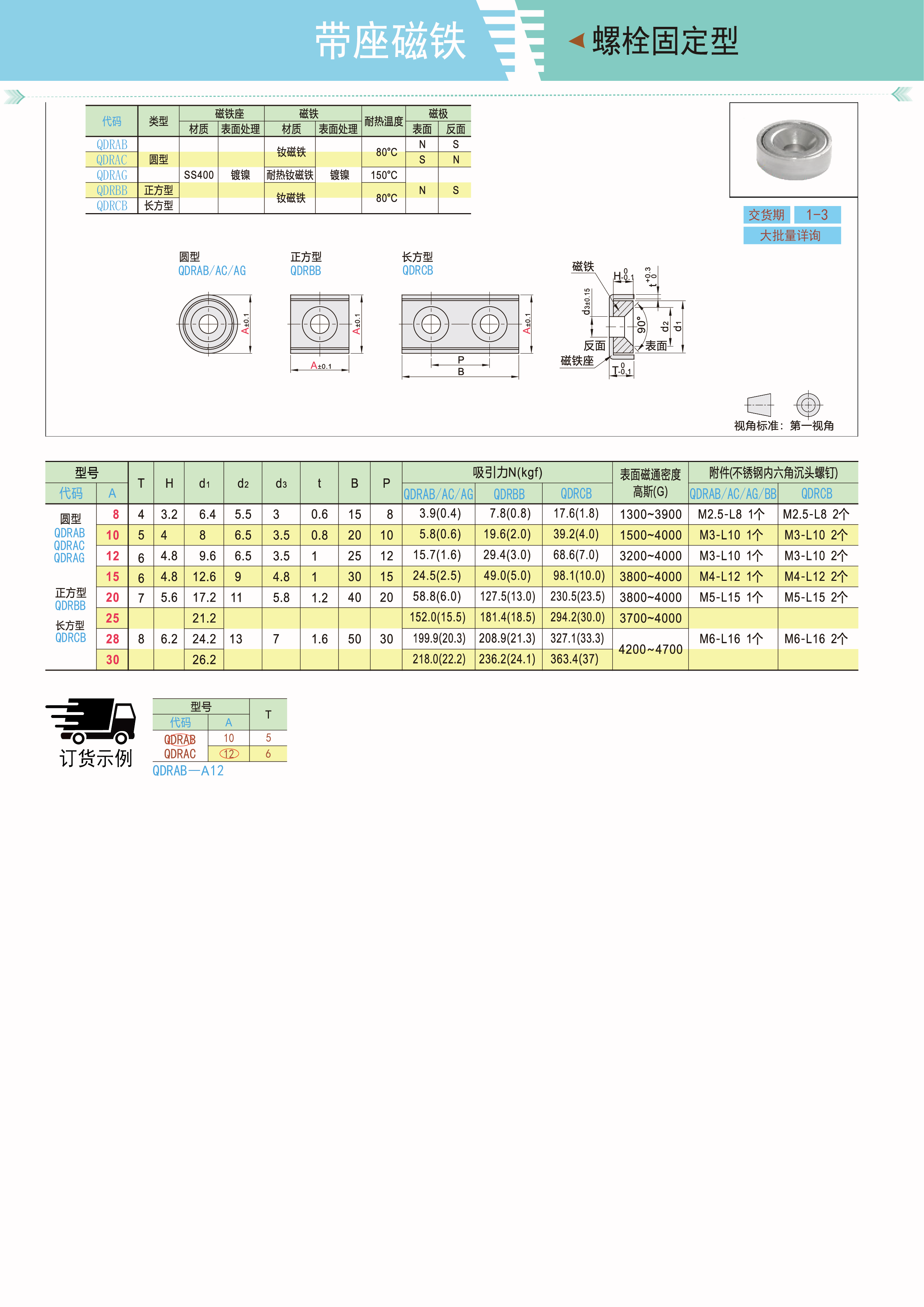 带座磁铁 螺栓固定型 圆型 钕磁铁 耐热钕磁铁 锥沉孔型