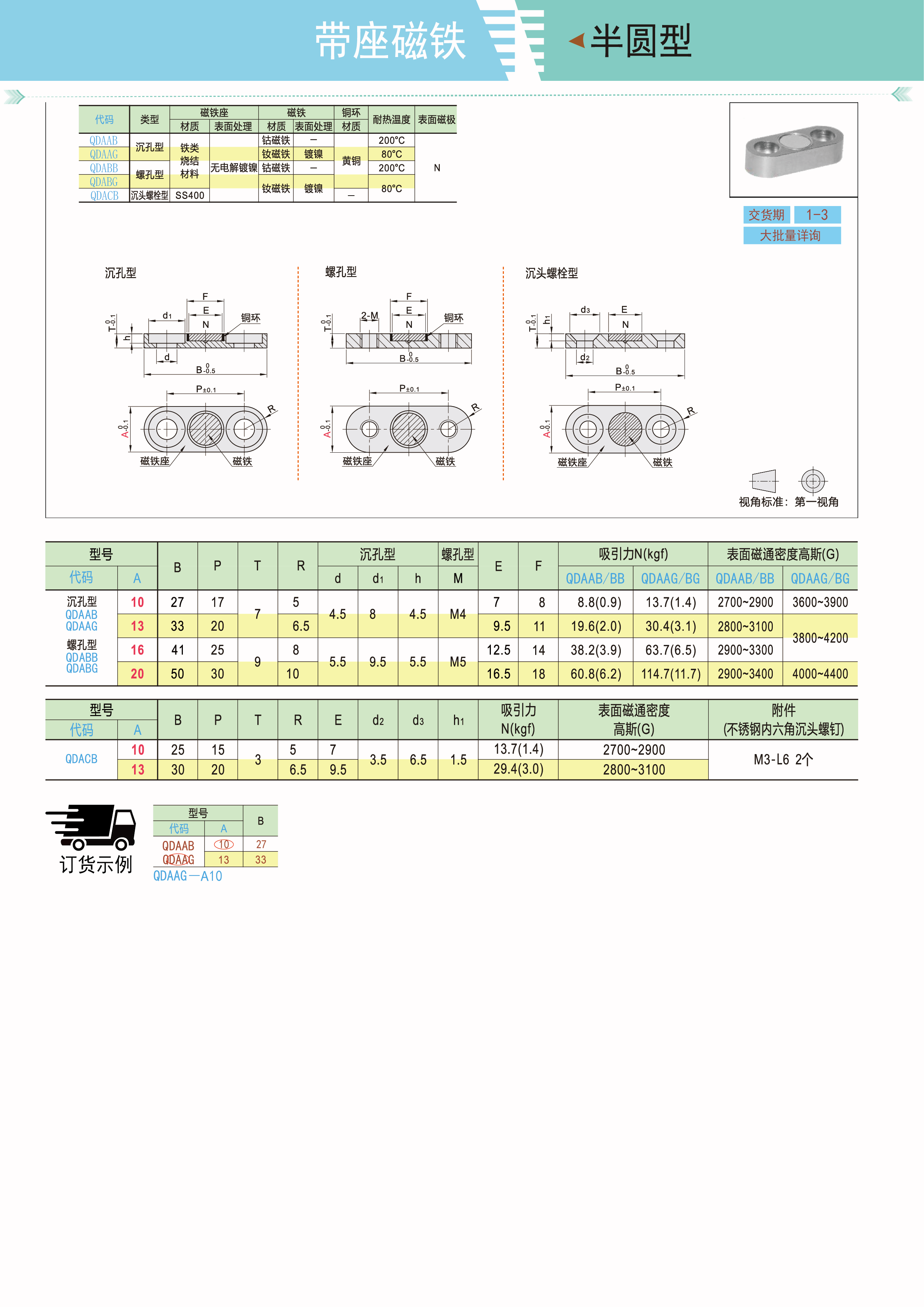 带座磁铁 半圆型 沉孔型 螺孔型 沉头螺栓型