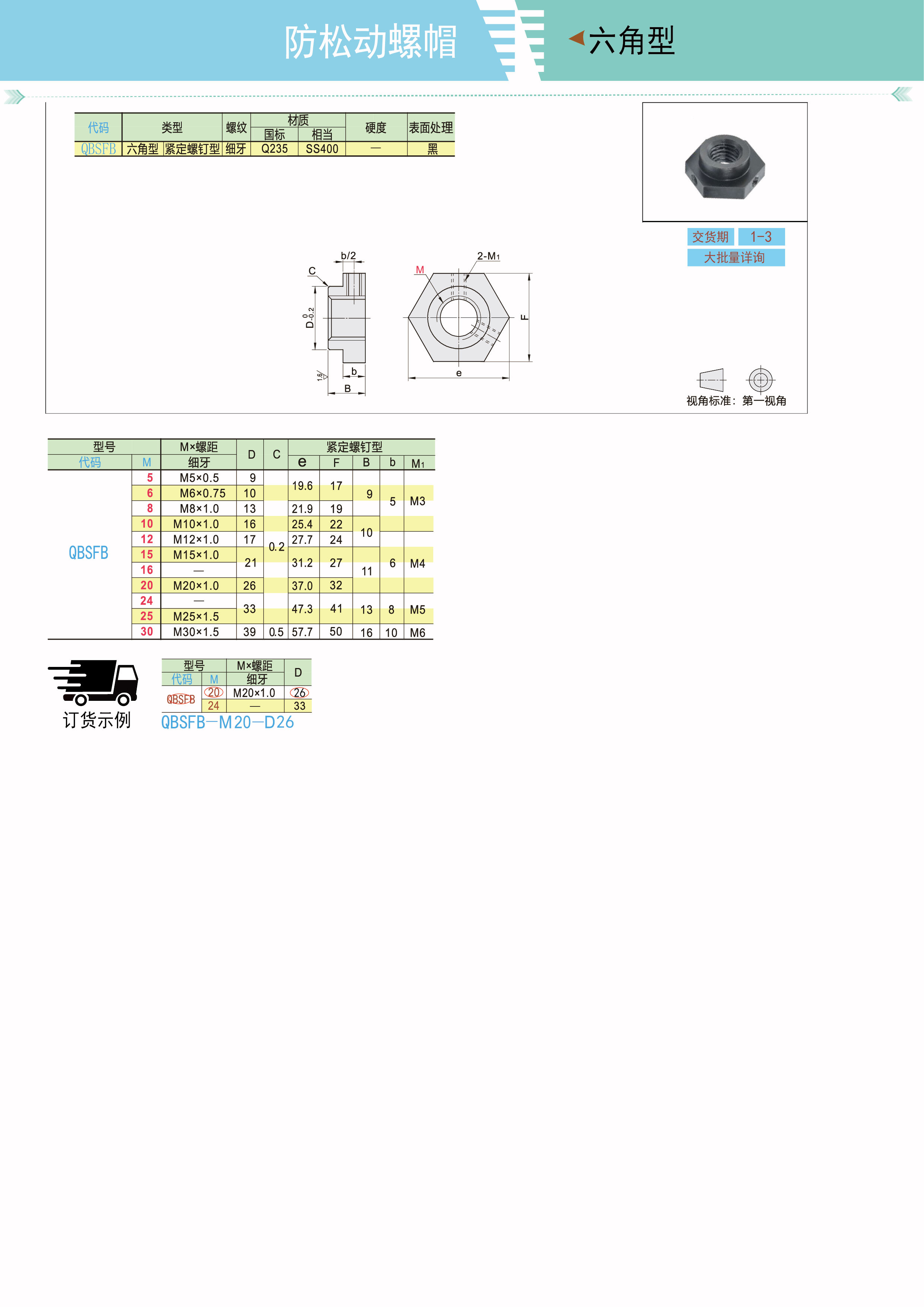 防松动螺帽 六角型 米制螺纹(细牙) 止动螺丝型