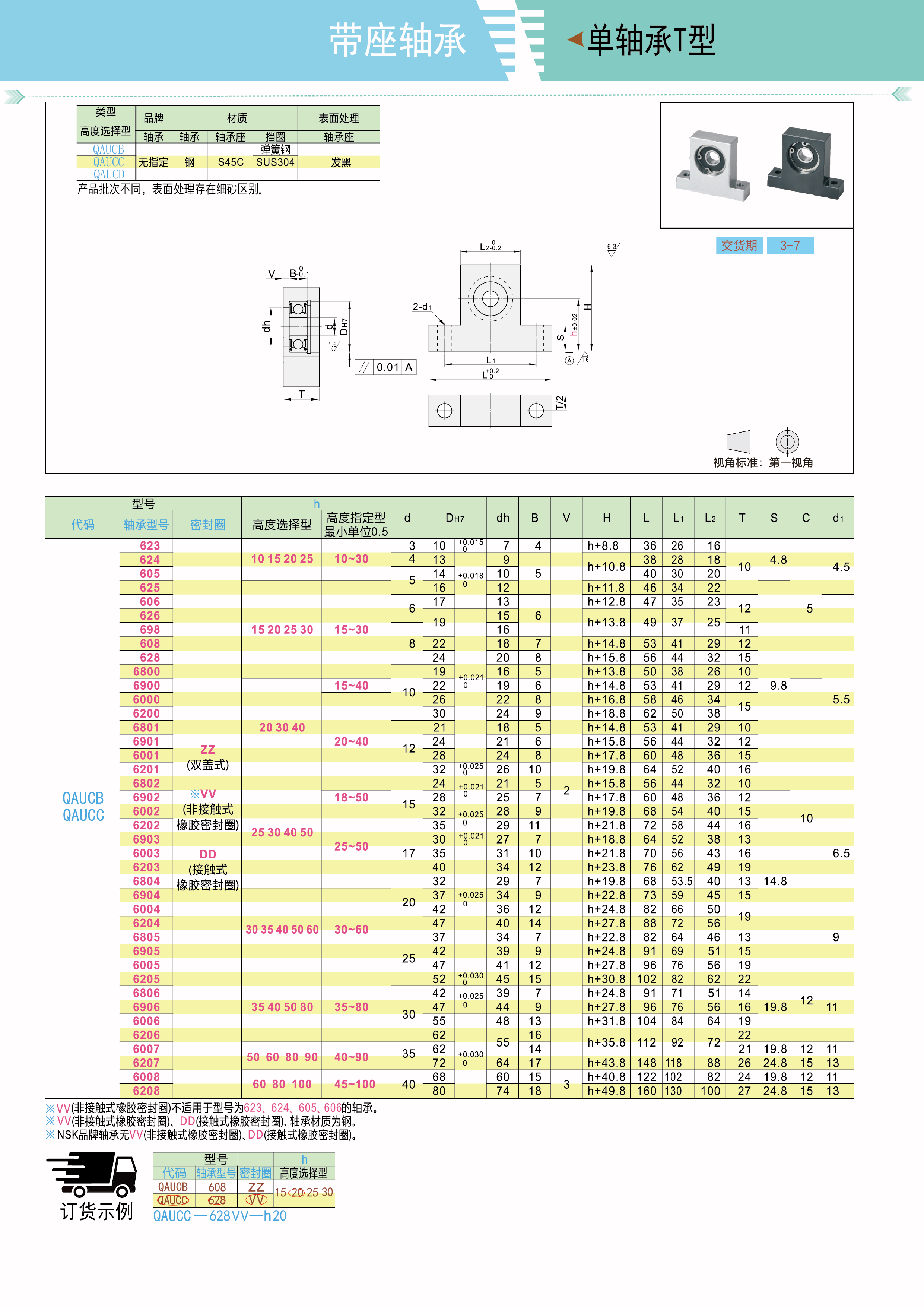 带座轴承 深沟球轴承 单轴承T型 高度选择型