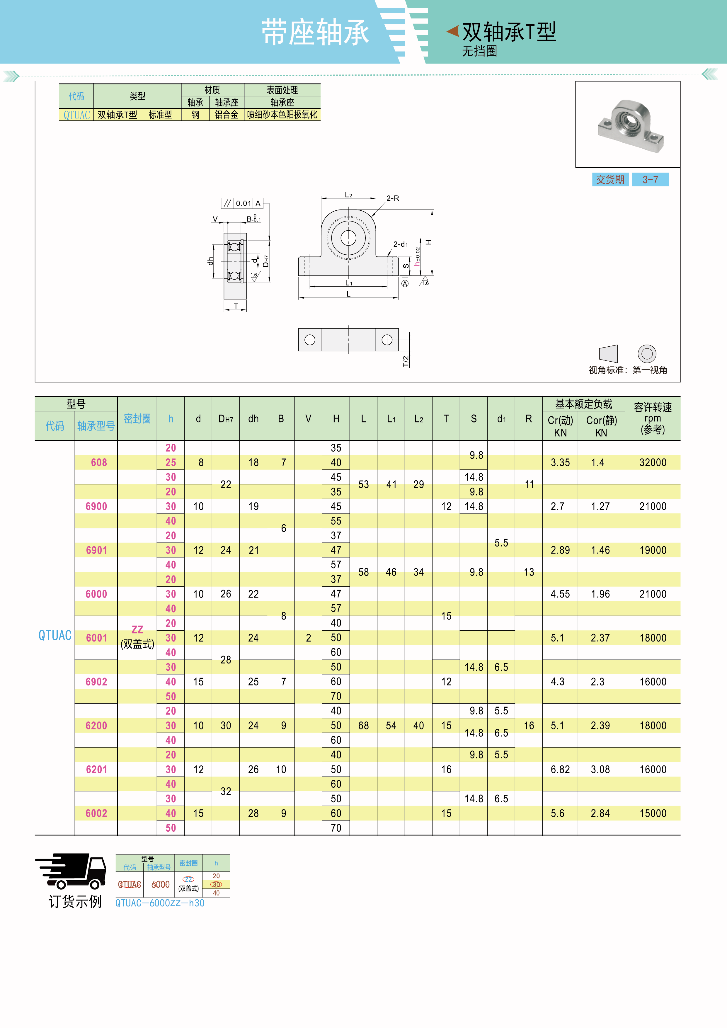带座轴承 深沟球轴承 圆角型 无挡圈 单轴承T型 高度选择型