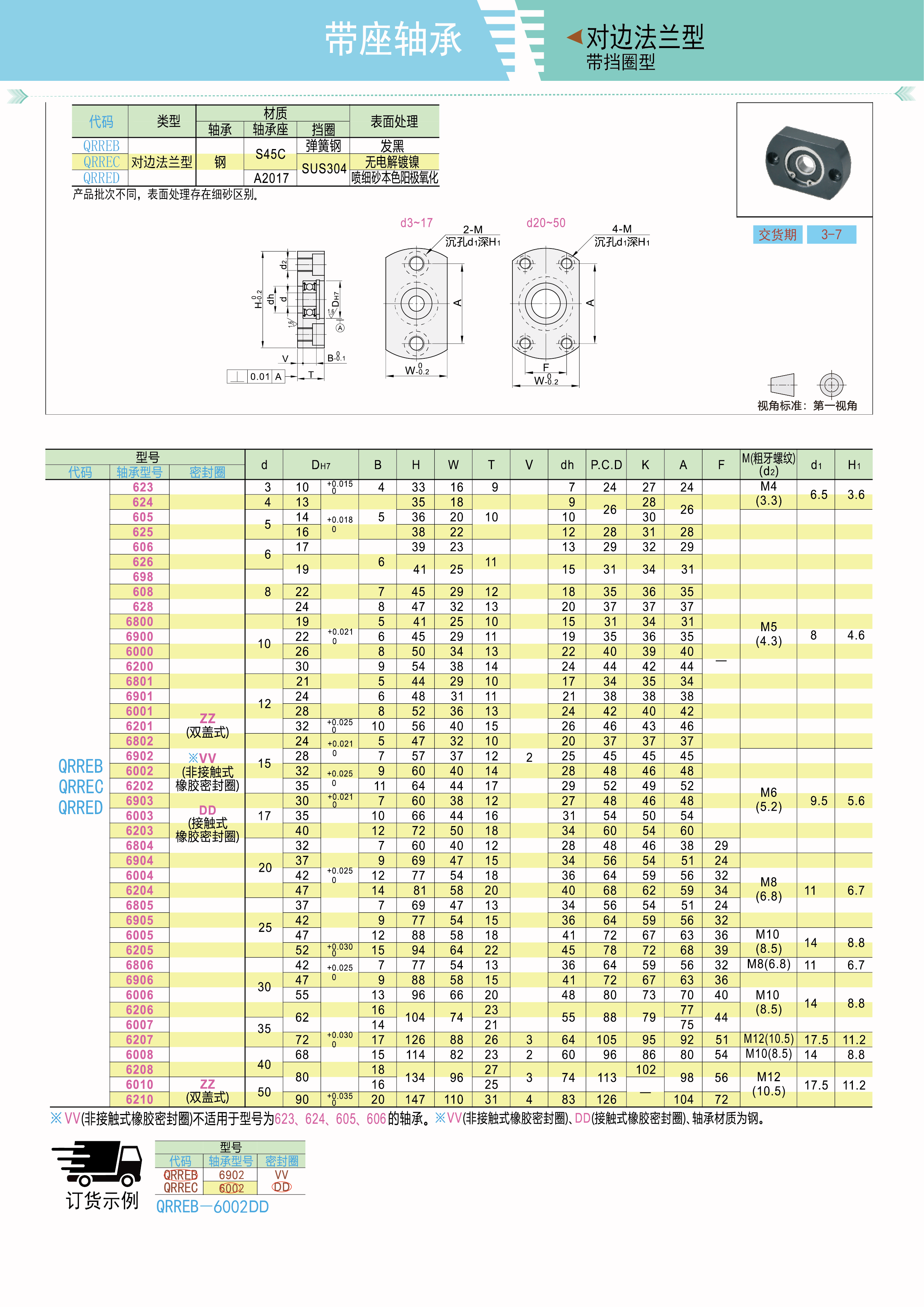 法兰型带座轴承 双轴承 深沟球轴承 带挡圈L尺寸选择型