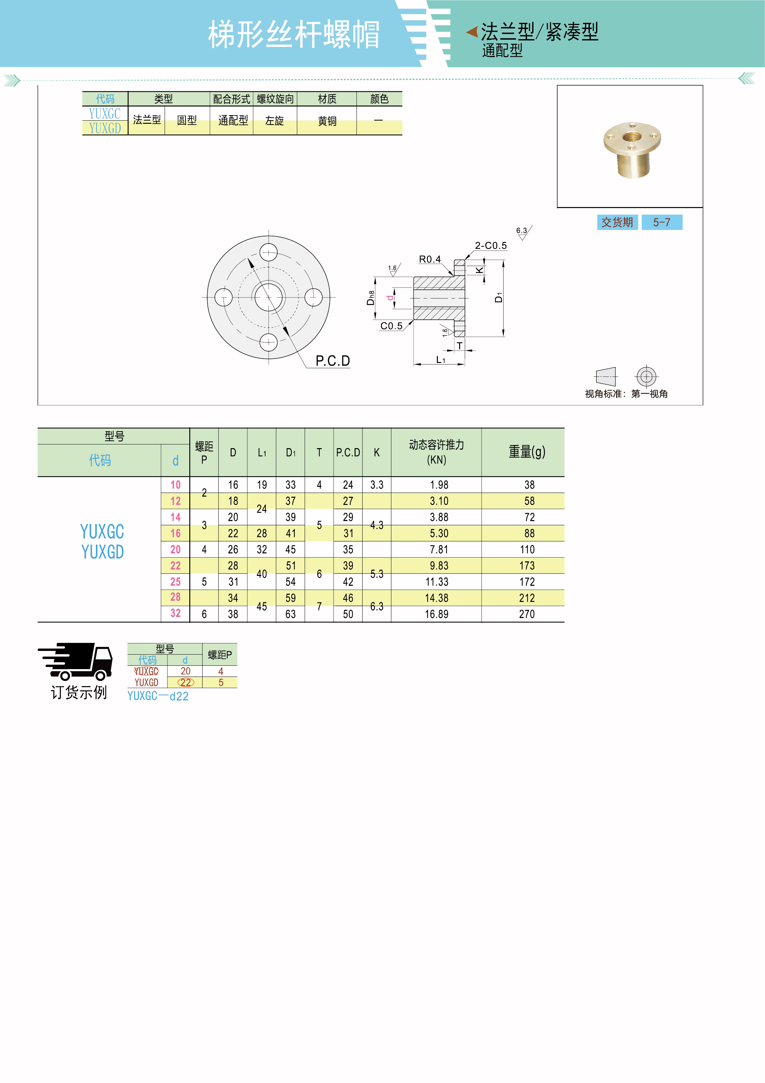 梯形丝杠用螺帽 紧凑型 标准型 通配型 圆法兰