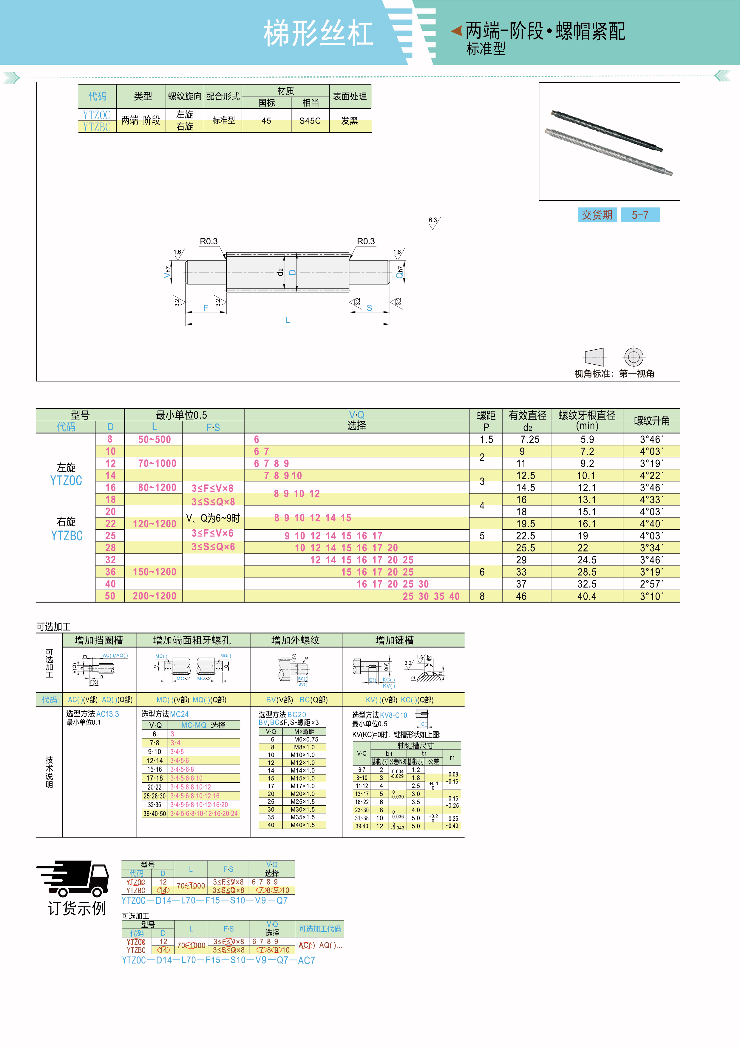 梯形丝杠两端一阶型 左旋 右旋 标准型
