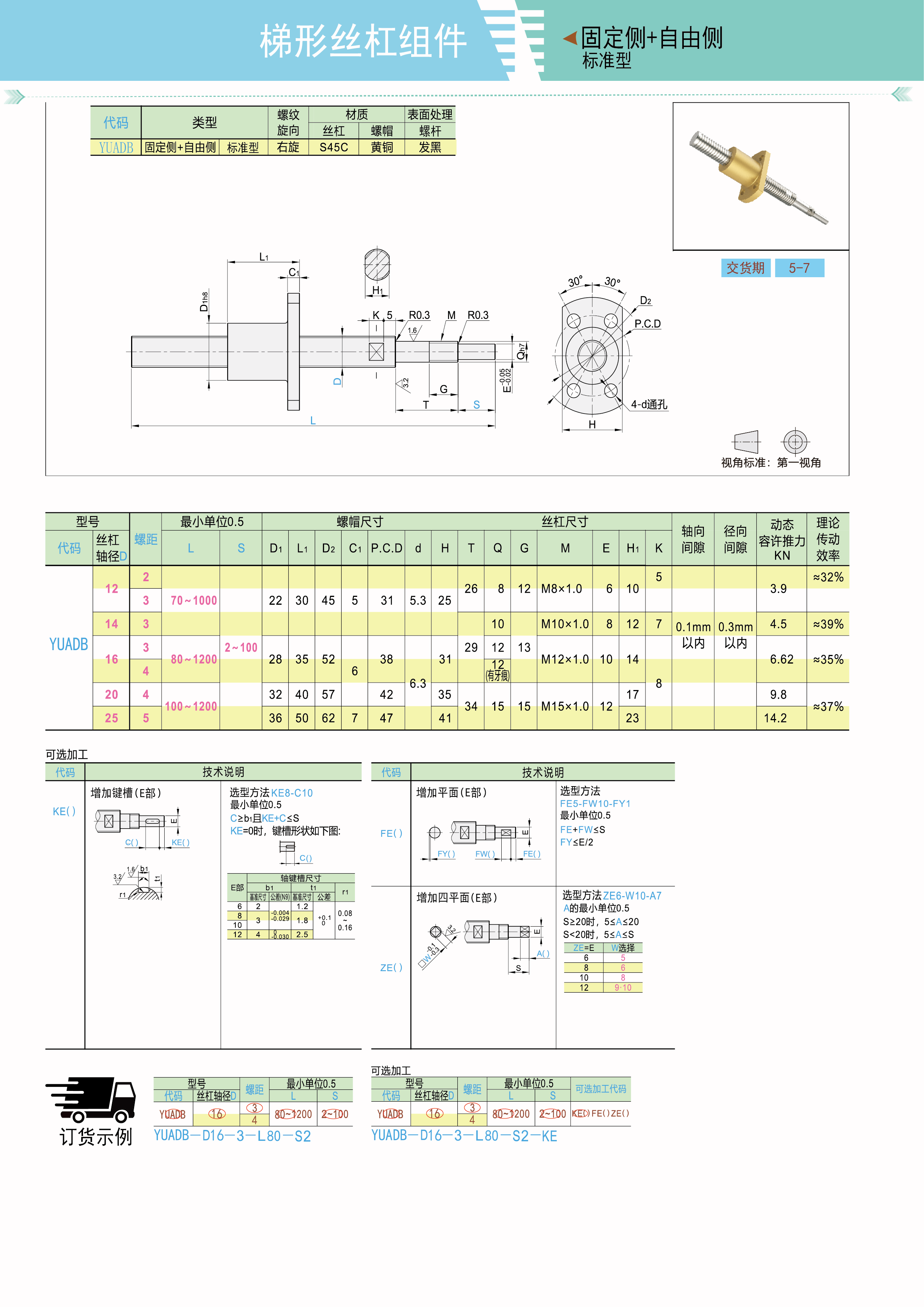 梯形丝杠组件 右旋螺纹 固定侧+自由侧 配合标准型