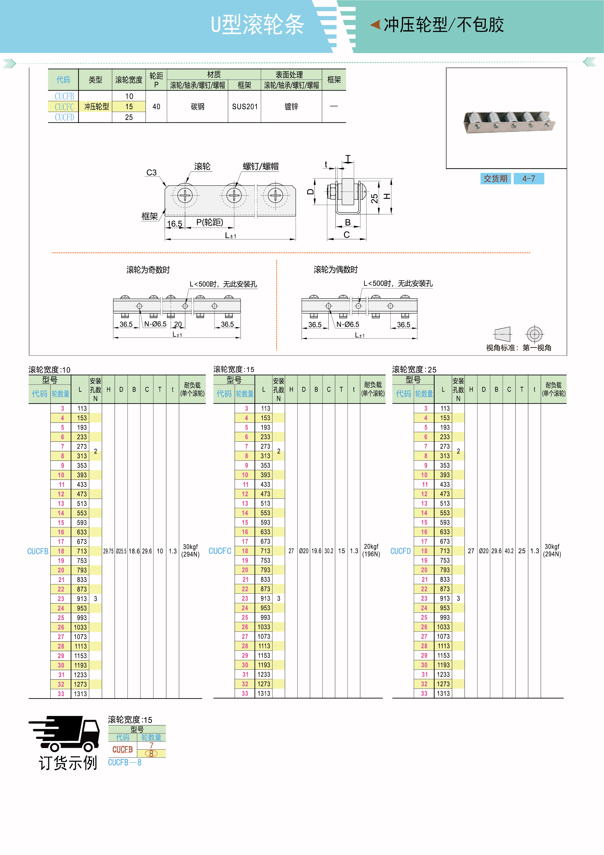 U型滚轮条 冲压轮型 不包胶 标准螺帽
