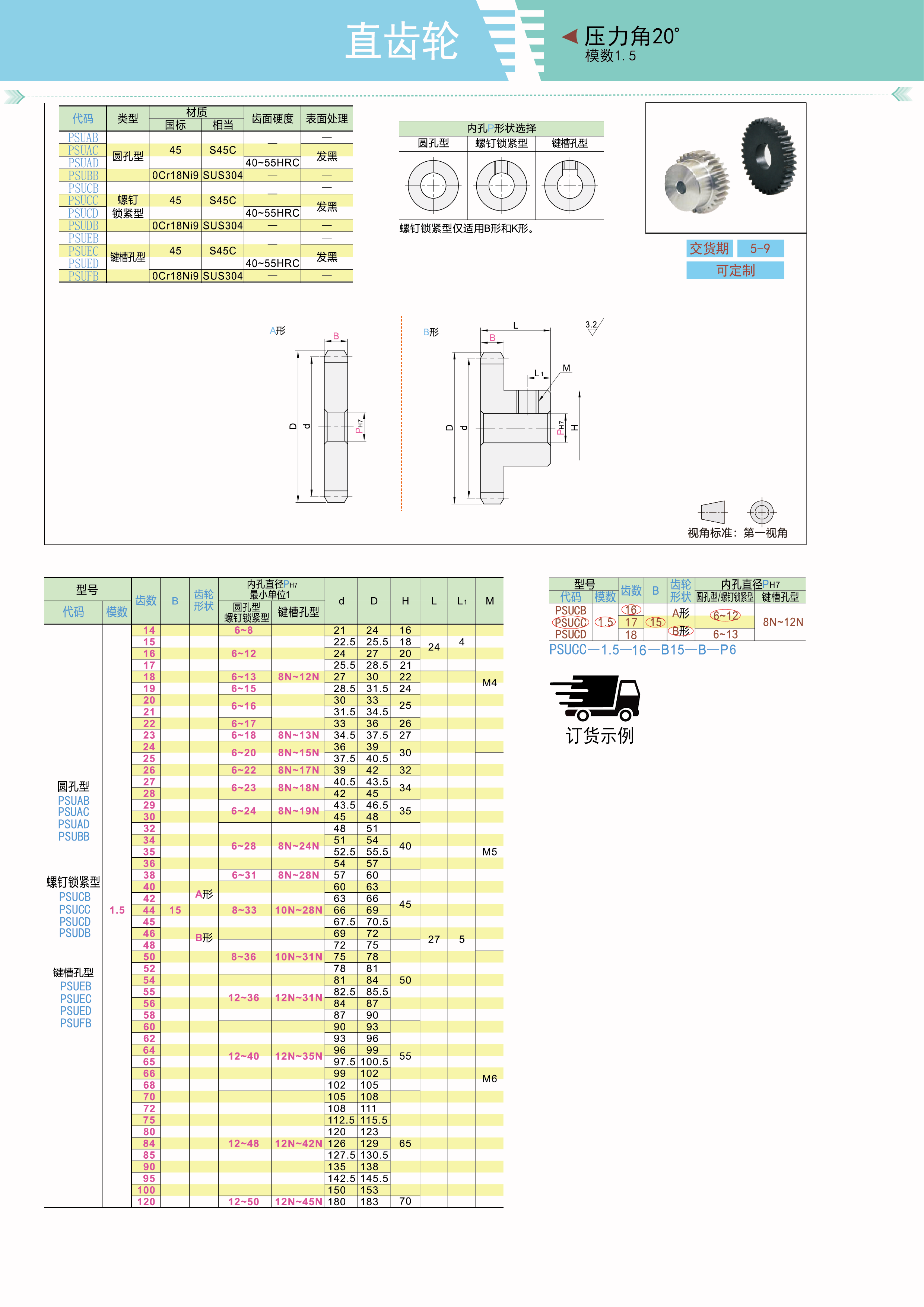 标准直齿轮 压力角20° 模数1.5 圆孔型 螺钉锁紧型 键槽孔型