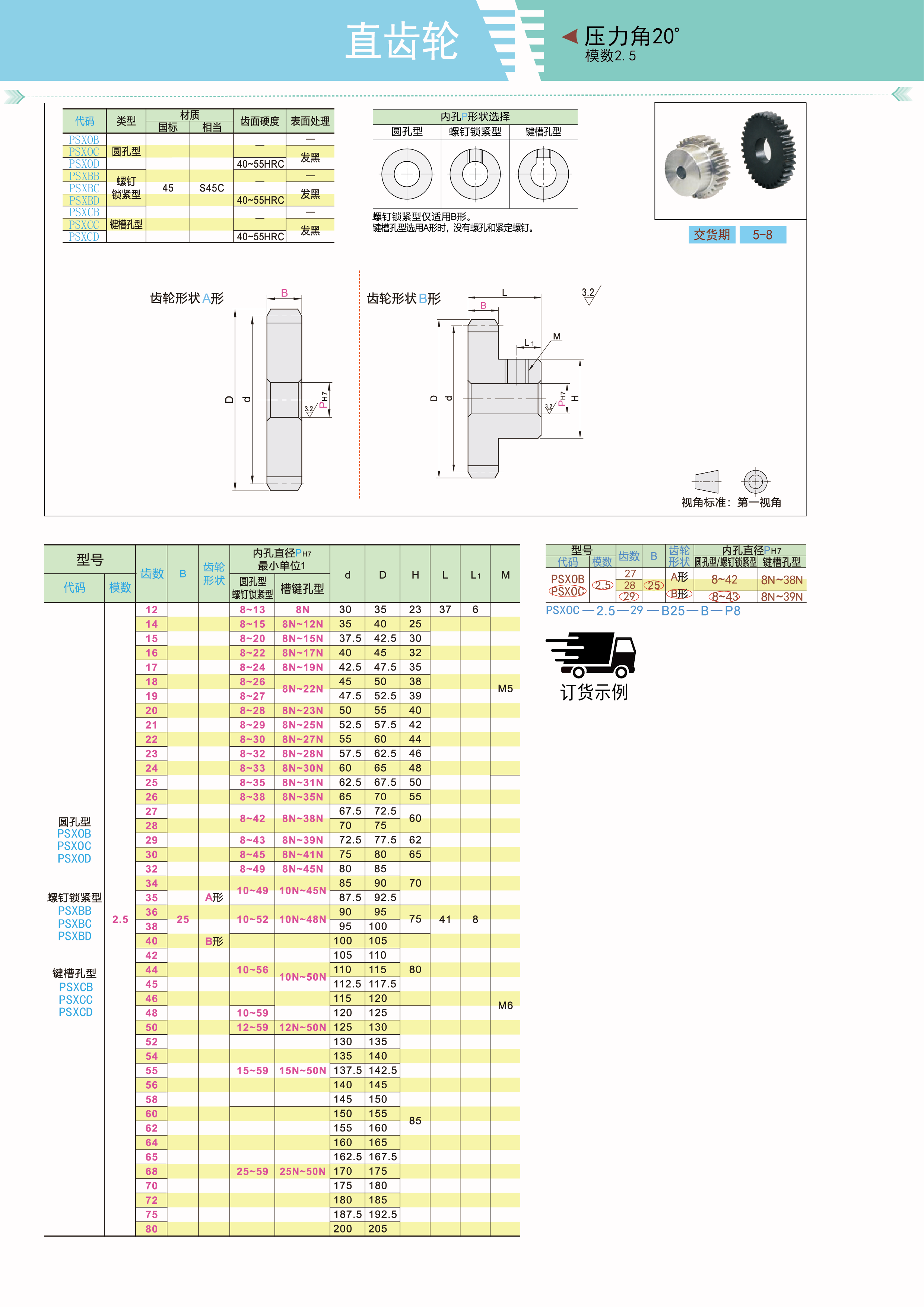 标准直齿轮 压力角20° 模数2.5 圆孔型 螺钉锁紧型 键槽孔型