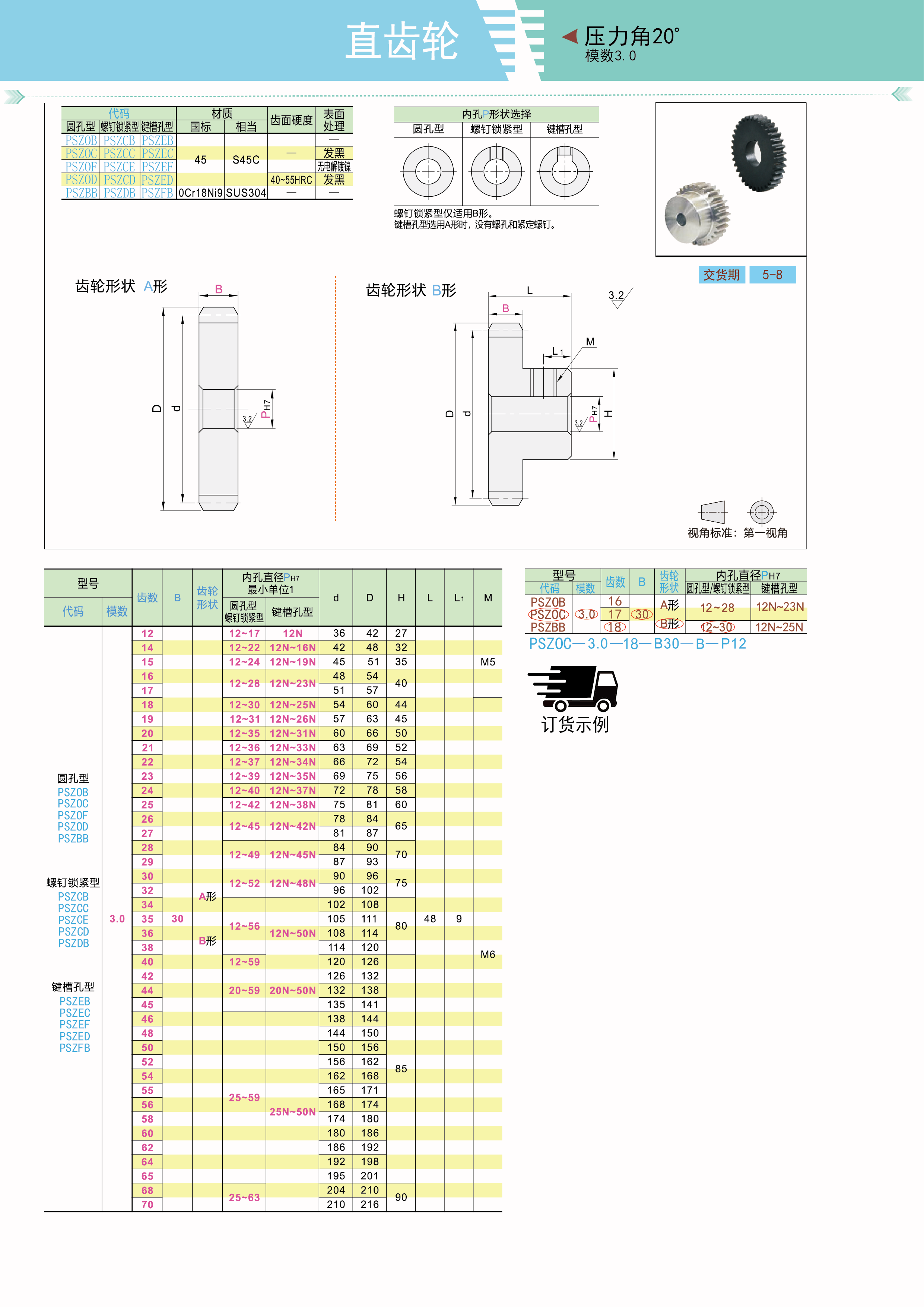 标准直齿轮 压力角20° 模数3.0 圆孔型 螺钉锁紧型 键槽孔型