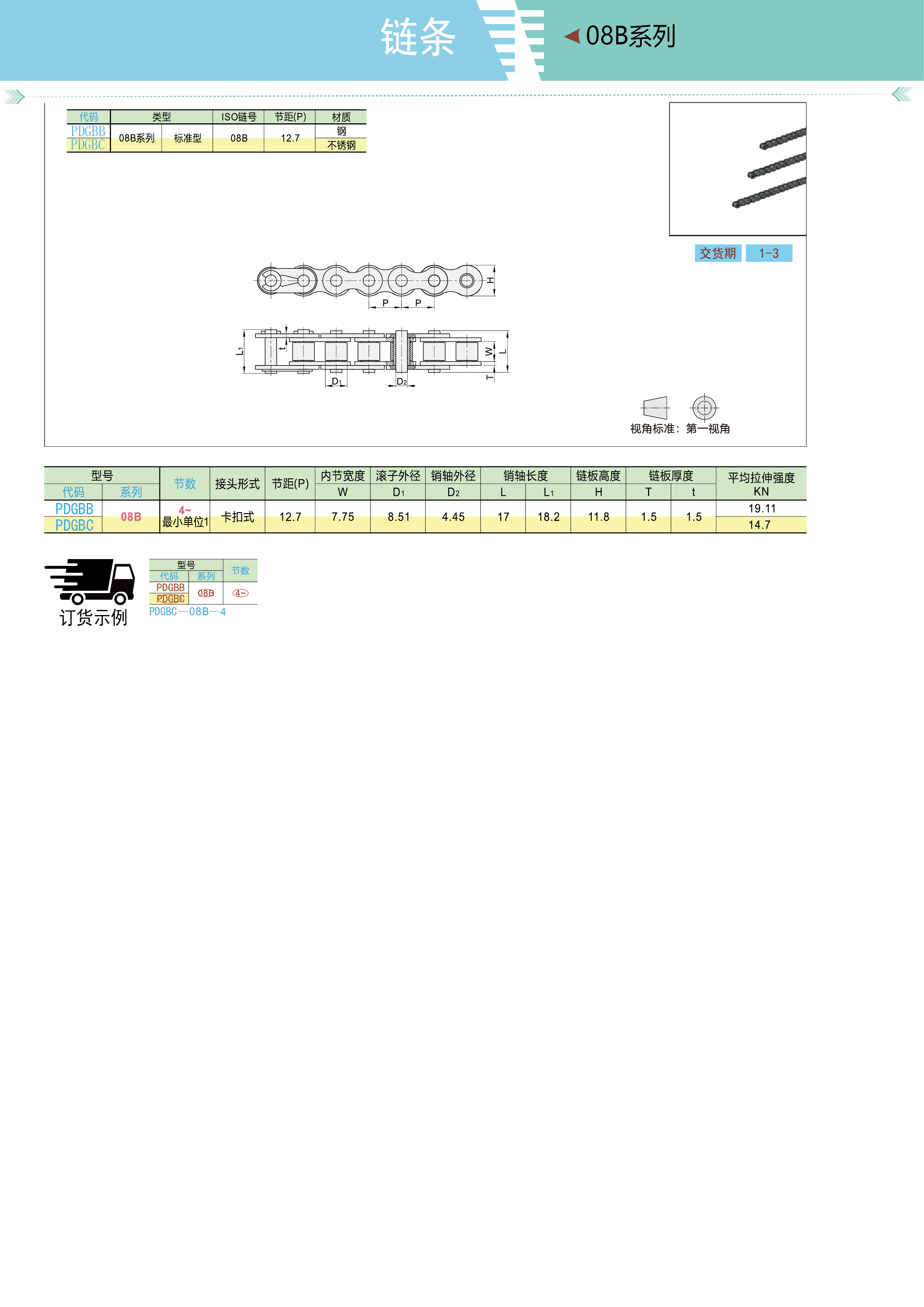 链条08B系列 12.7节距 标准型