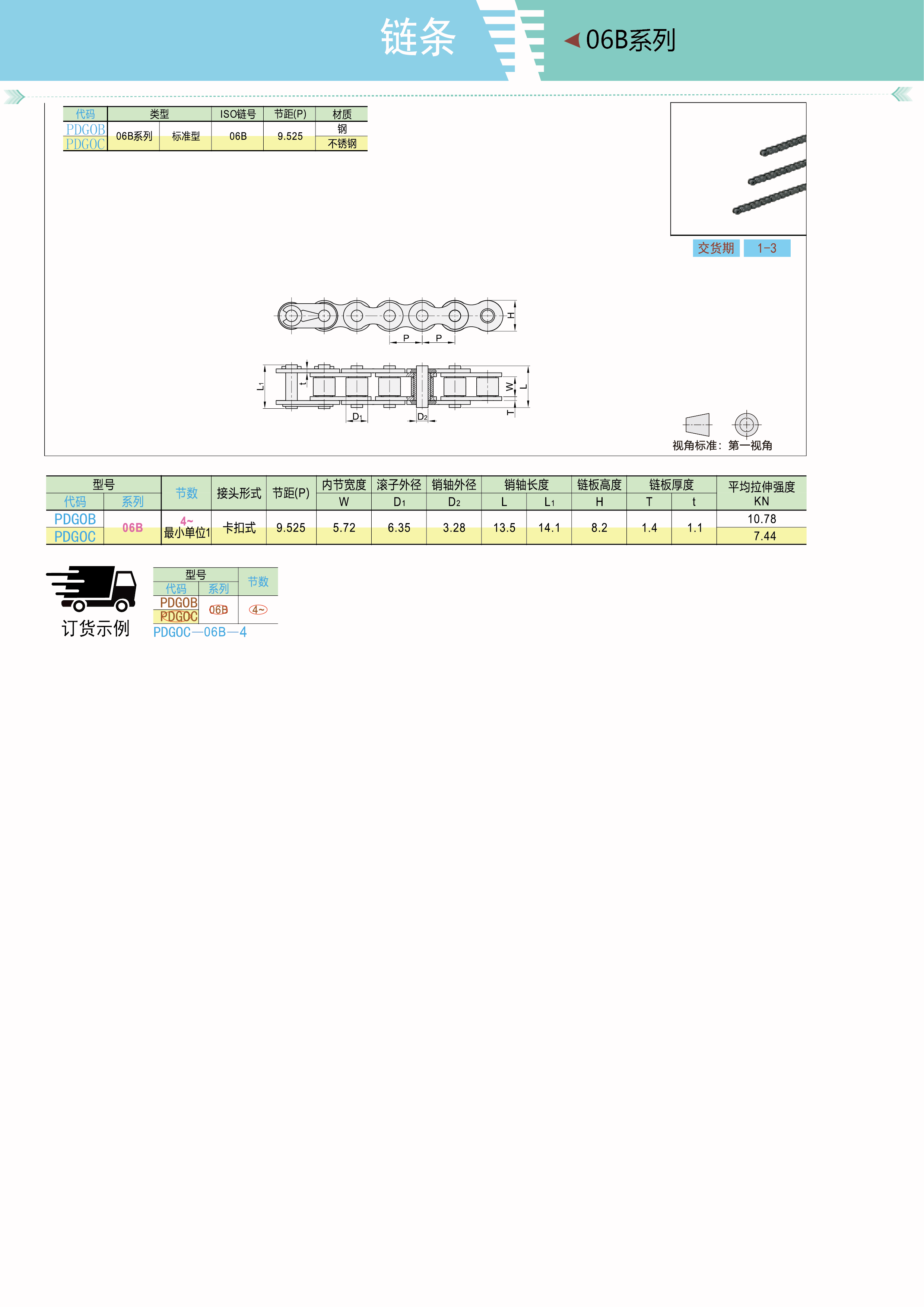 链条06B系列 9.525节距 标准型