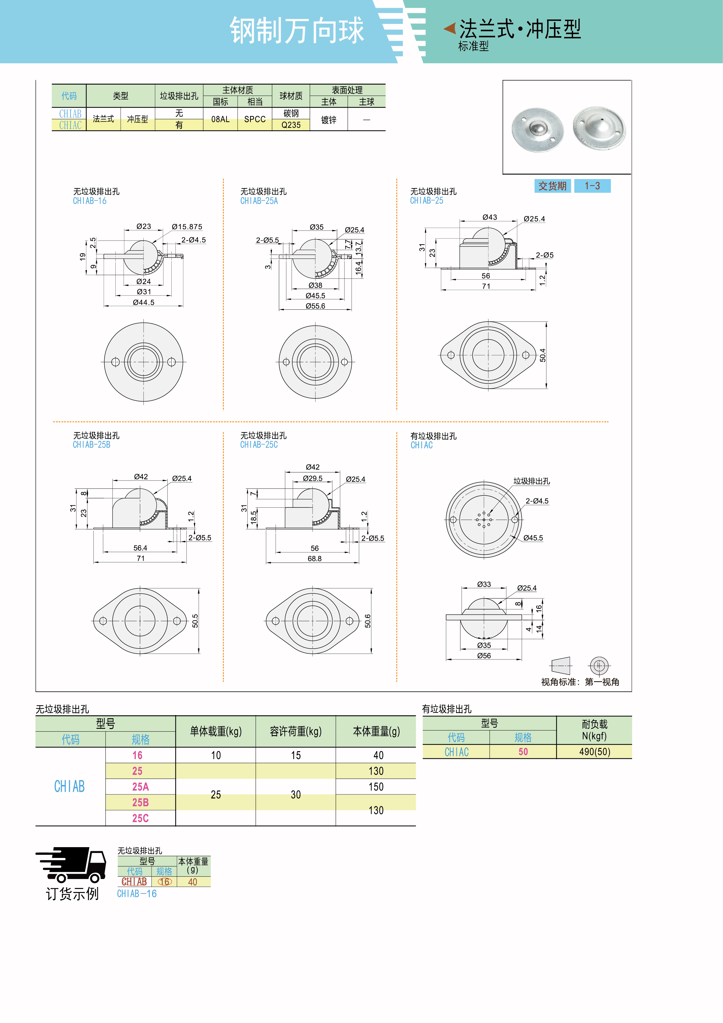钢制万向球 标准型 冲压型 法兰式