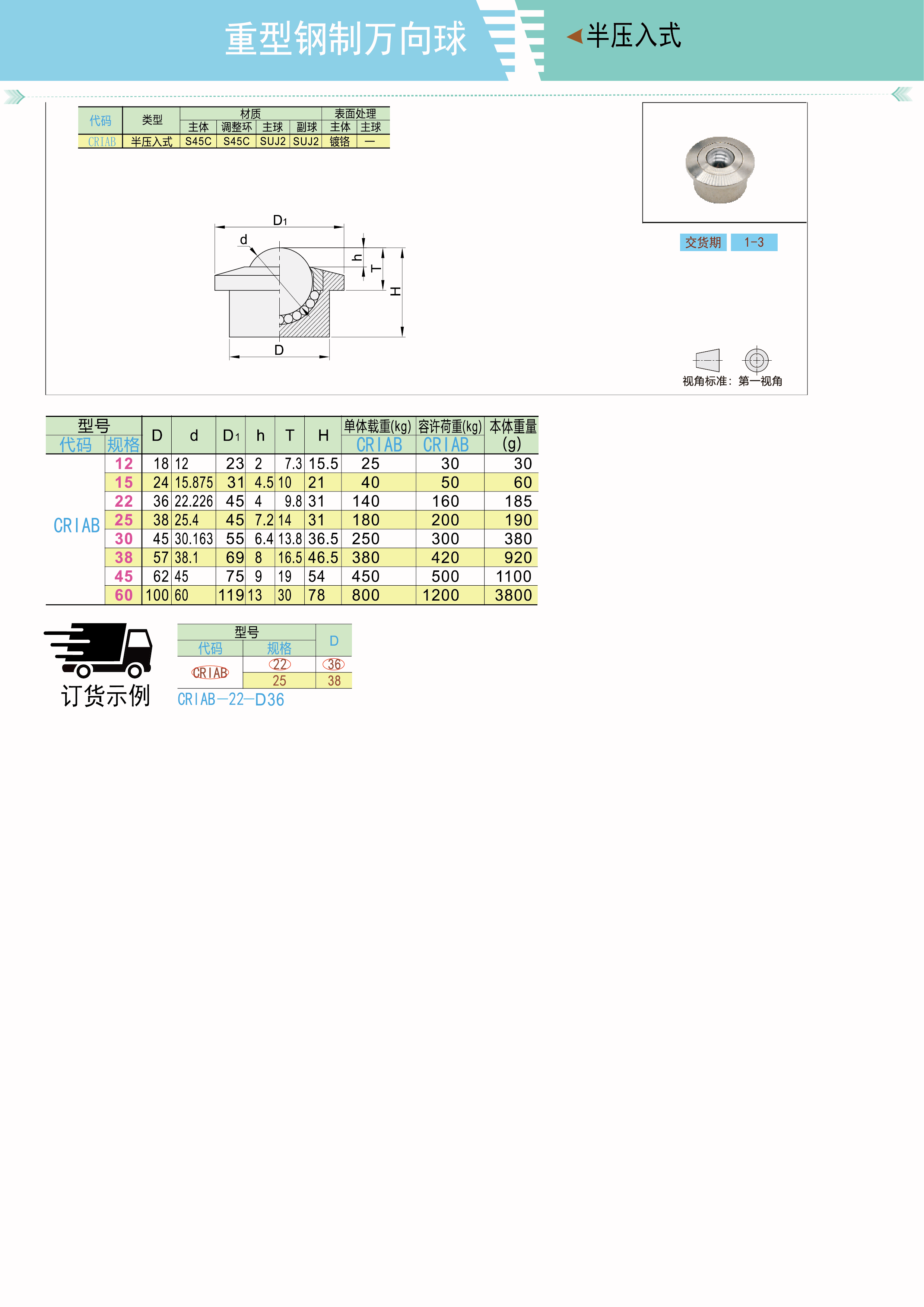 重型钢制万向球 车削型 半压入式