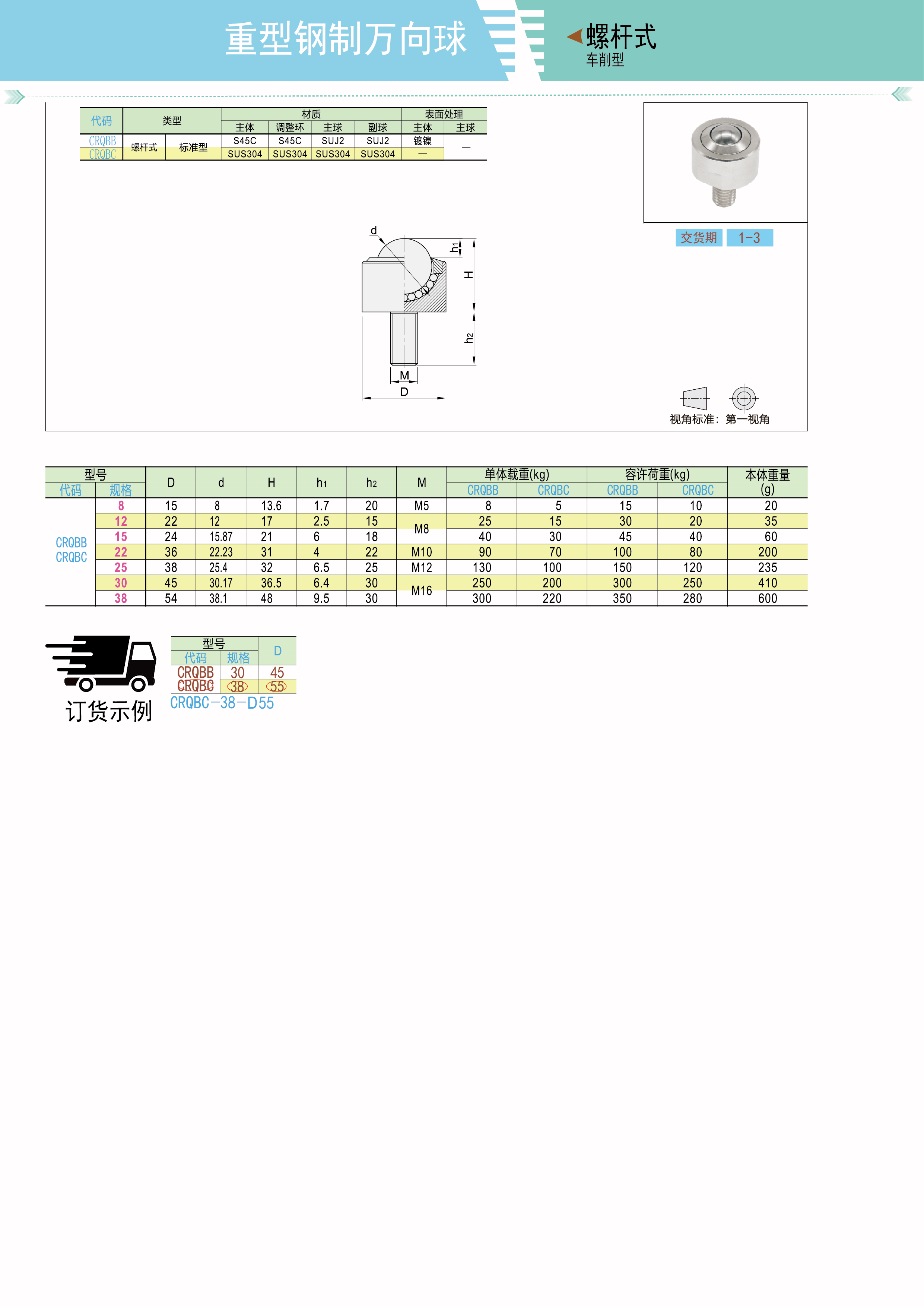 重型钢制万向球 车削型 螺杆式 标准型