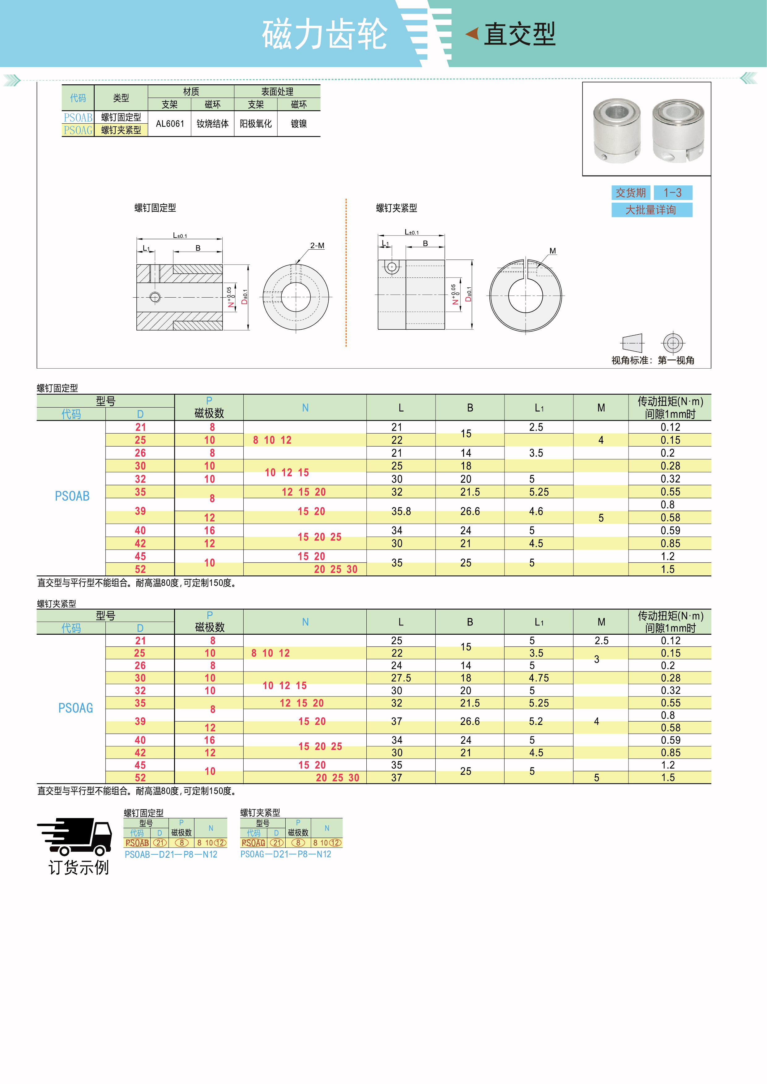 磁力齿轮 直交型 螺钉固定型 螺钉夹紧型