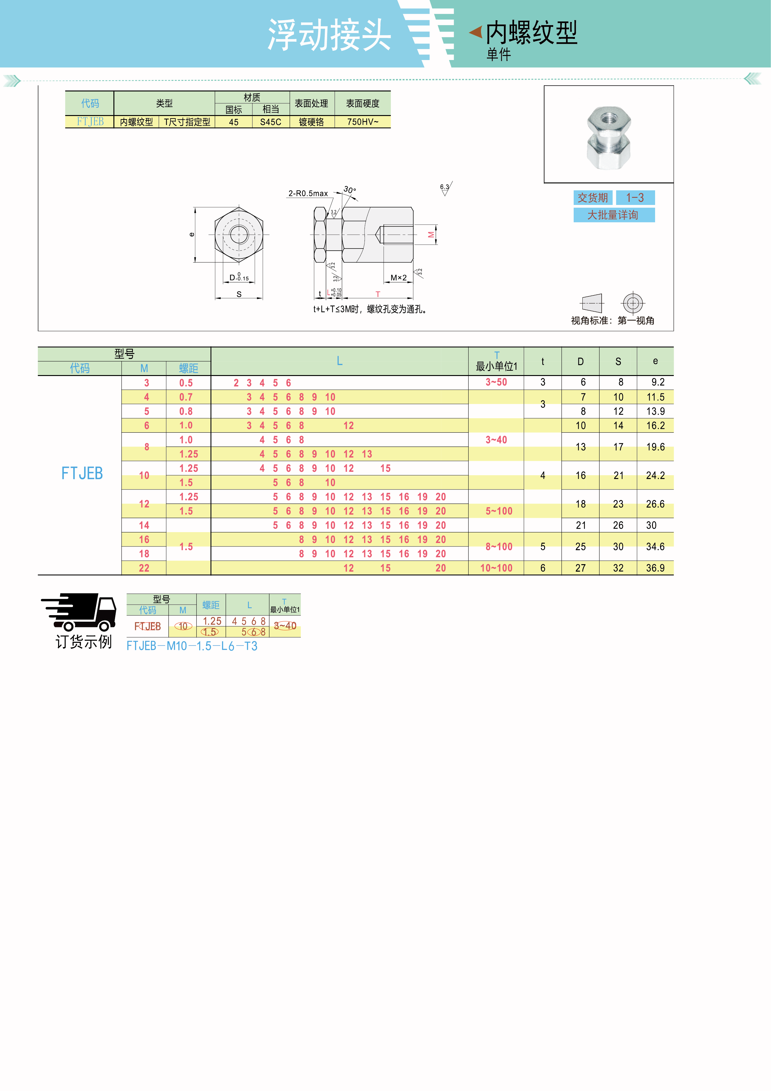 浮动接头 单件 内螺纹型 T尺寸指定型