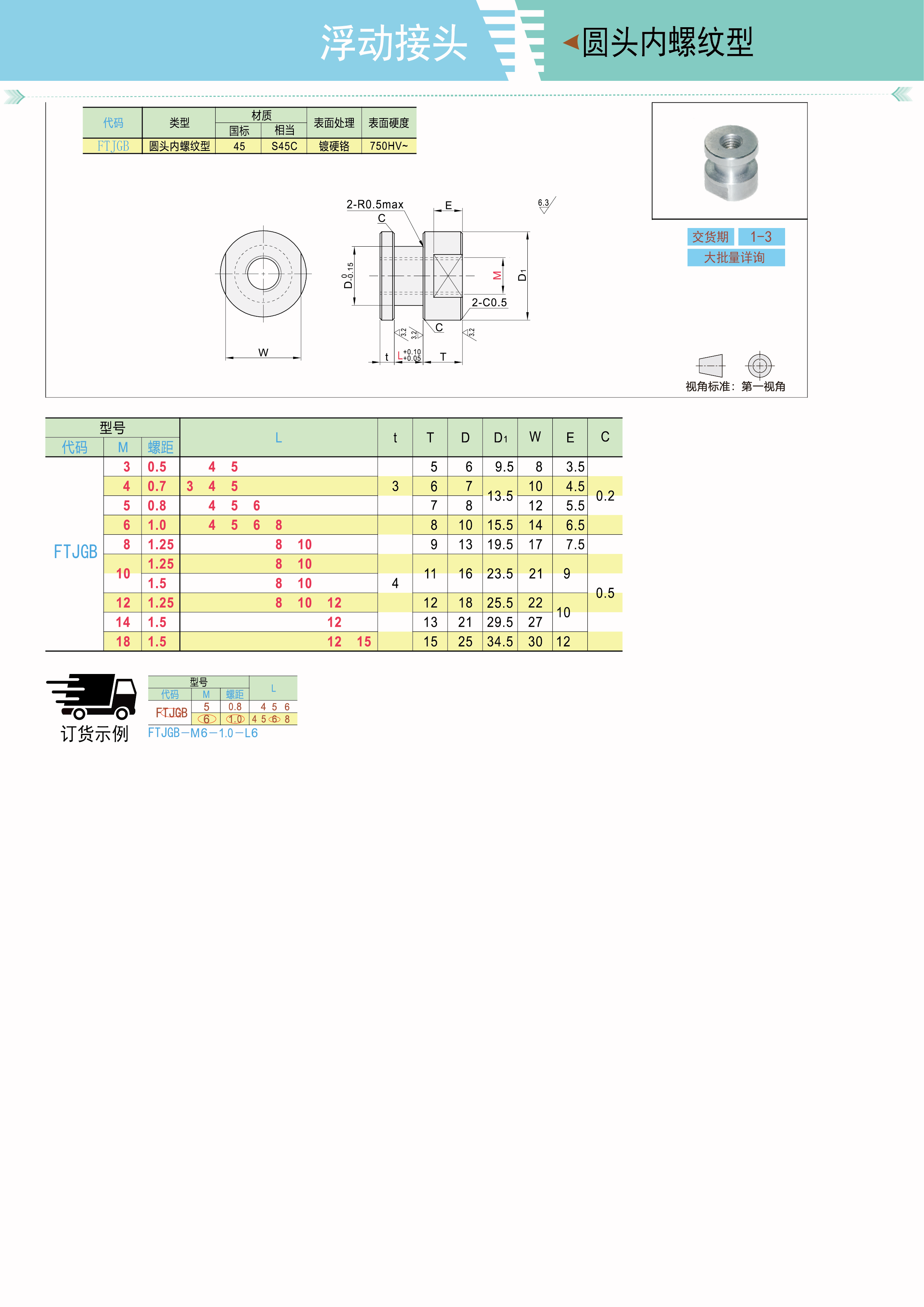 浮动接头 单件 圆头内螺纹型