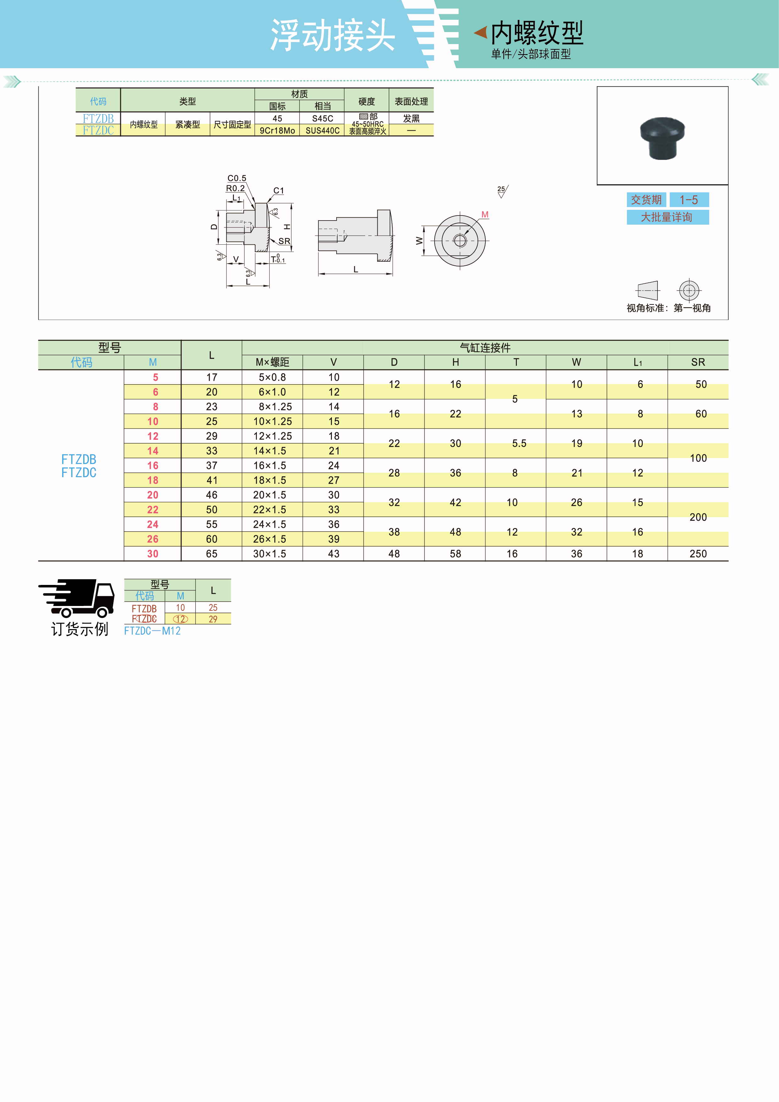浮动接头 单件 内螺纹型 紧凑型 尺寸固定型 头部球面型