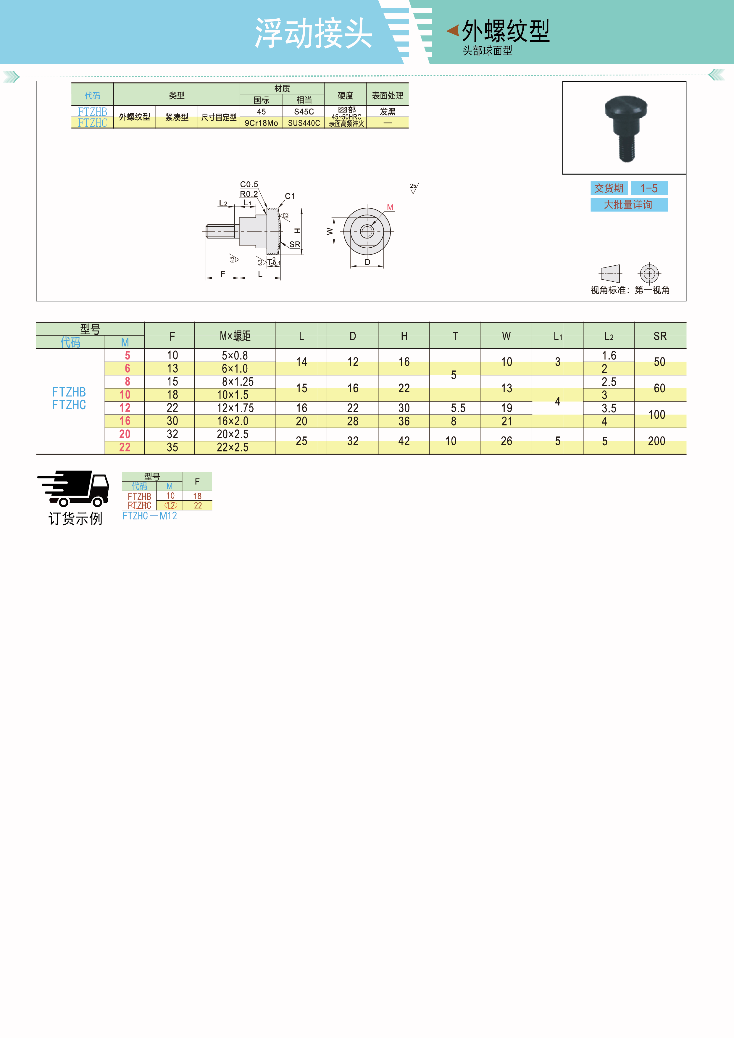 浮动接头 外螺纹型 紧凑型 尺寸固定型 头部球面型