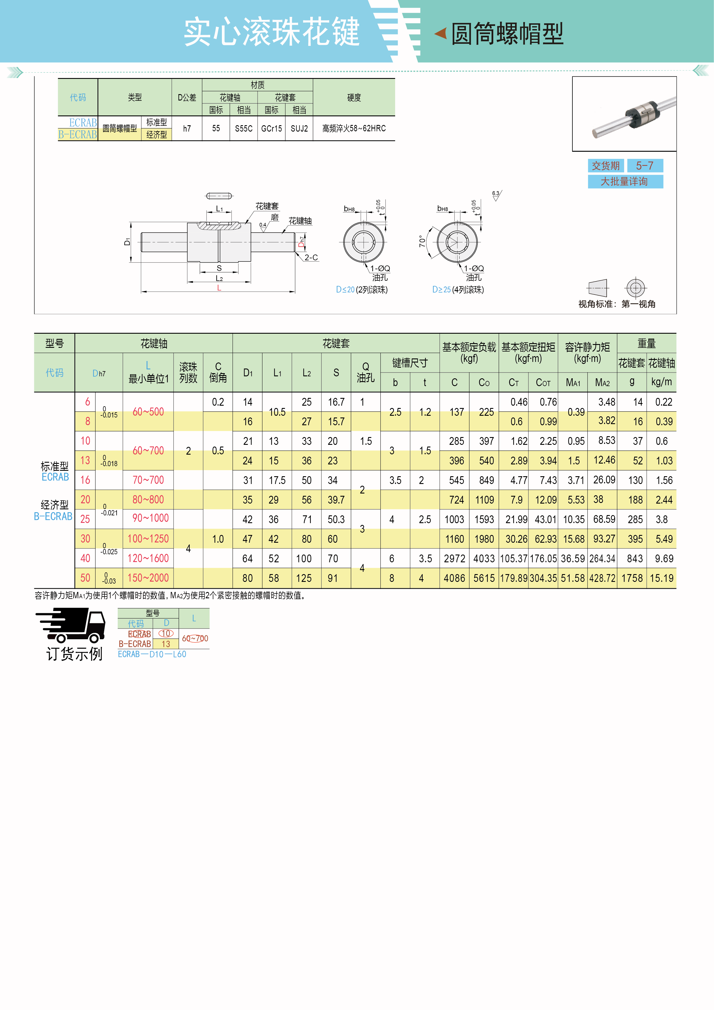 实心滚珠花键 圆筒螺帽型 标准型 经济型 轴公差h7
