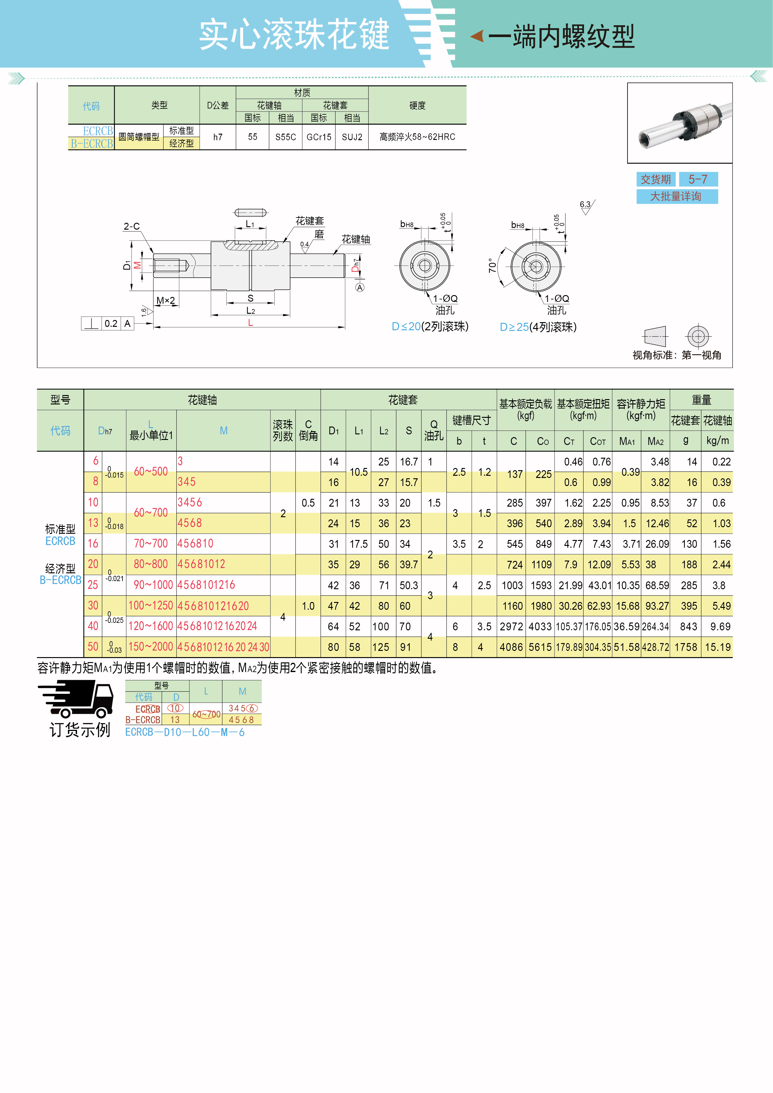 实心滚珠花键 一端内螺纹型 圆筒螺帽型 标准型 经济型 轴公差h7