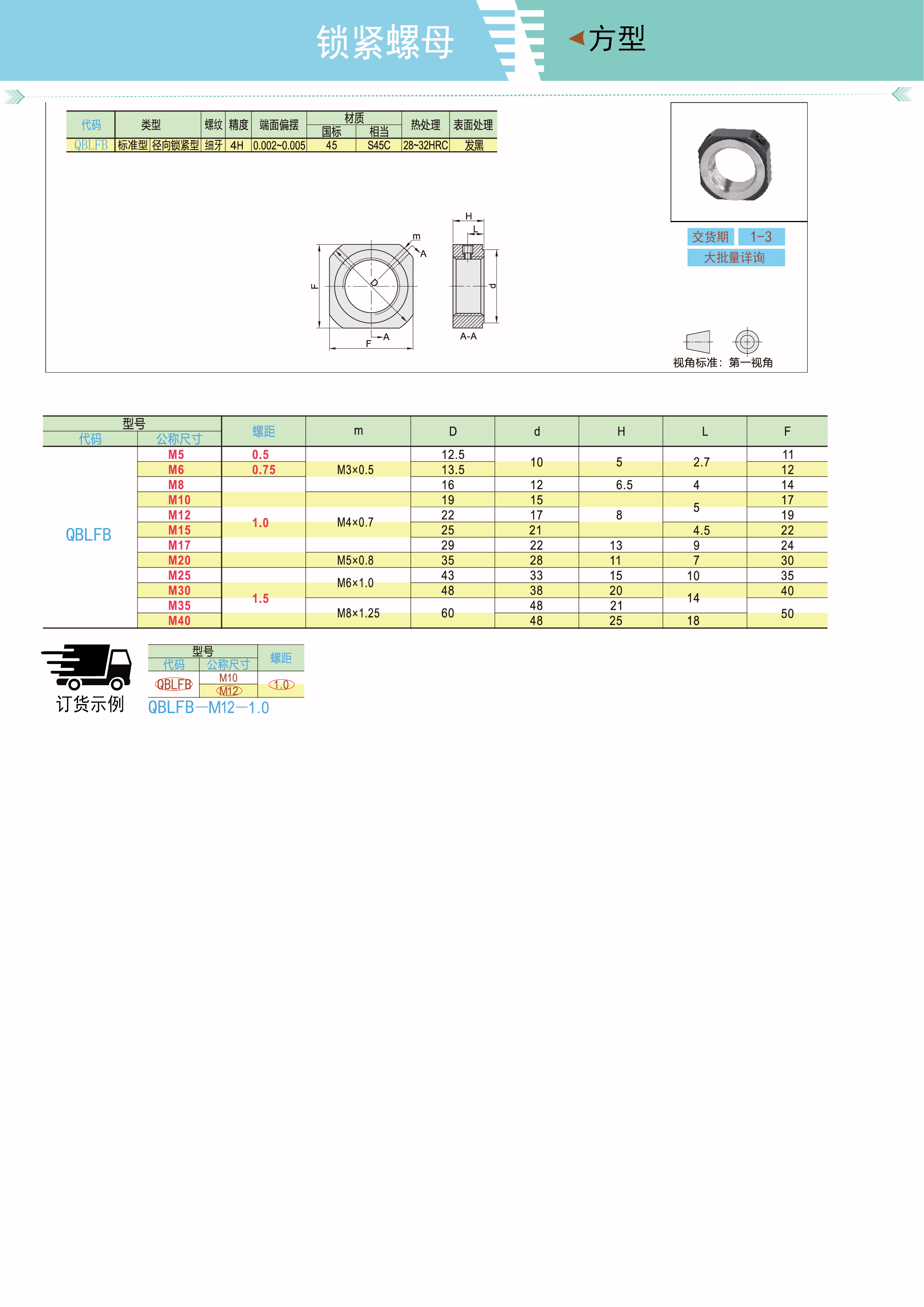 锁紧螺母 标准型 径向锁紧型 细牙 方形